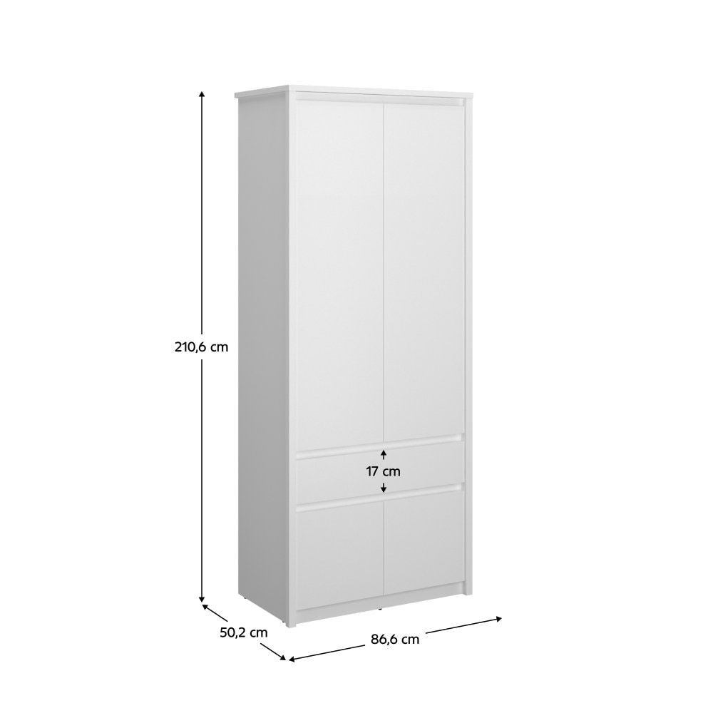 Materiál: DTD laminovaná/ABS hrany Barva: bílá Rozměry (ŠxHxV): 86,6x50,2x210,6 cm Tloušťka materiálu: 1,6-3,2 cm Čtyřdveřová S úložným prostorem S věšákovou tyčí Nosnost věšákové tyče: 15 kg Šuplík Výška šuplíku: 17 cm Plastové nožičky Moderní design Doporučujeme připevnit ke zdi Dodáváno v demontu