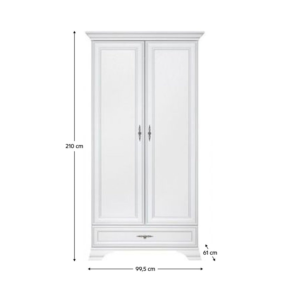 Materiál: DTD laminovaná Barva: alpská bílá Rozměry (ŠxHxV): 99,5x61x210 cm Tloušťka materiálu: 1,6 cm Dvoudveřová Na nožičkách Výška nožiček: 8 cm Kovové úchytky Barva úchytek: antické stříbro Úložný prostor Se šuplíkem Nosnost šuplíku: 3 kg Věšáková tyč Doporučujeme připevnit ke stěně Dodáváno v…