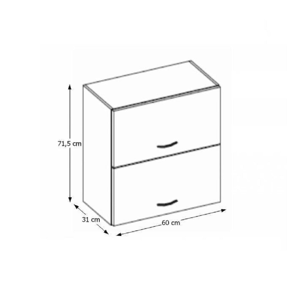 Horní skříňka 60 GU-72 je se 2-mi dvířky. Dvířka se otevírají pomocí kovových úchytů. Mají systém tichého zavírání.