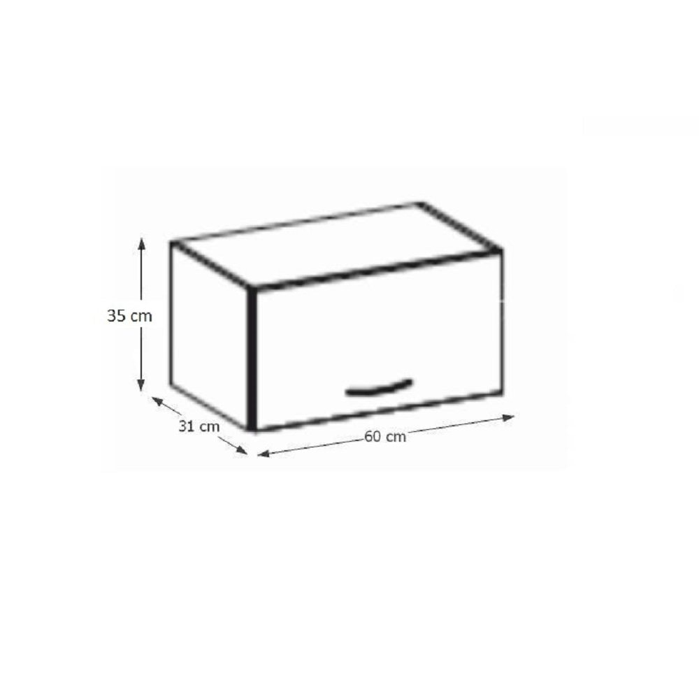 Horní skříňka 60 OK-40 je se 1-mi dvířky. Dvířka se otevírají pomocí kovových úchytů. Mají systém tichého zavírání.
