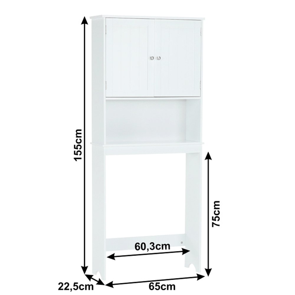 ATENE TYP 5 skříňka nad WC Barevné provedení bílá, Materiál: MDF Rozměry (ŠxHxV): 65x22,5x155 cm Výška od podlahy po polici: 75 cm Tloušťka materiálu: 12 mm Dodávané v demontu.