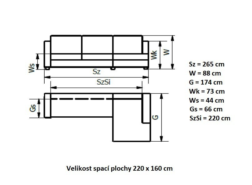 - velikost spací plochy je o rozměrech 160 x 220 cm, vhodná pro příležitostné spaní,
