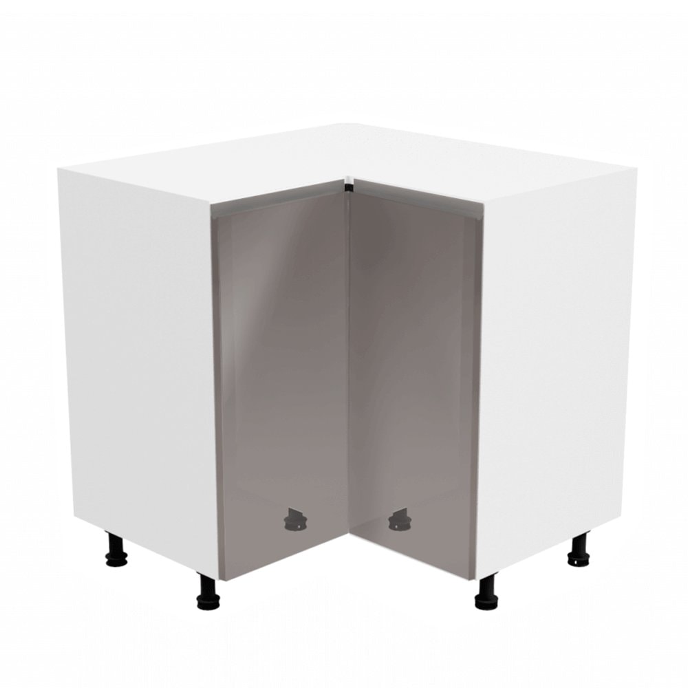 Spodní rohová skříňka D90N je s dvířky. Dvířka se otevírají bez úchytky. Vnitřní prostor je policí rozdělen na dvě odkládací plochy.