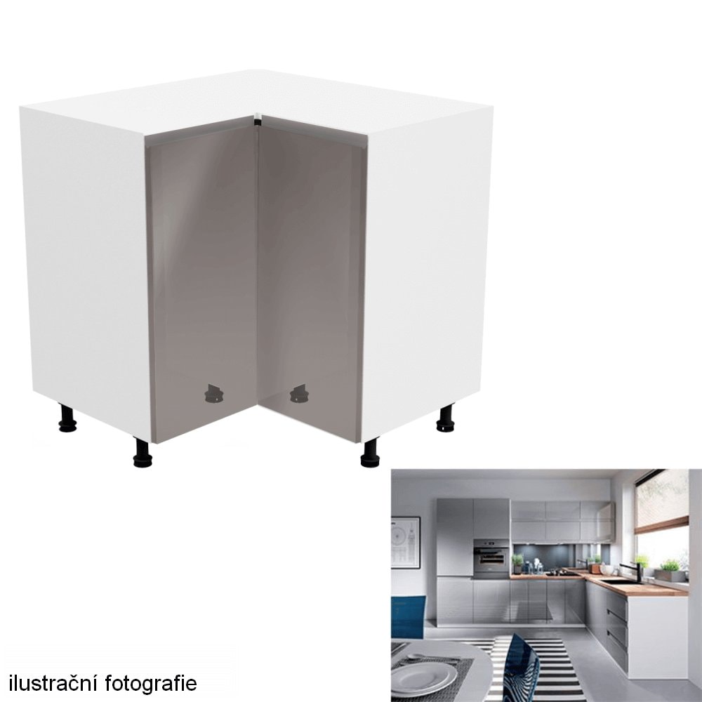 Spodní rohová skříňka, bílá / šedá extra vysoký lesk, AURORA D90N