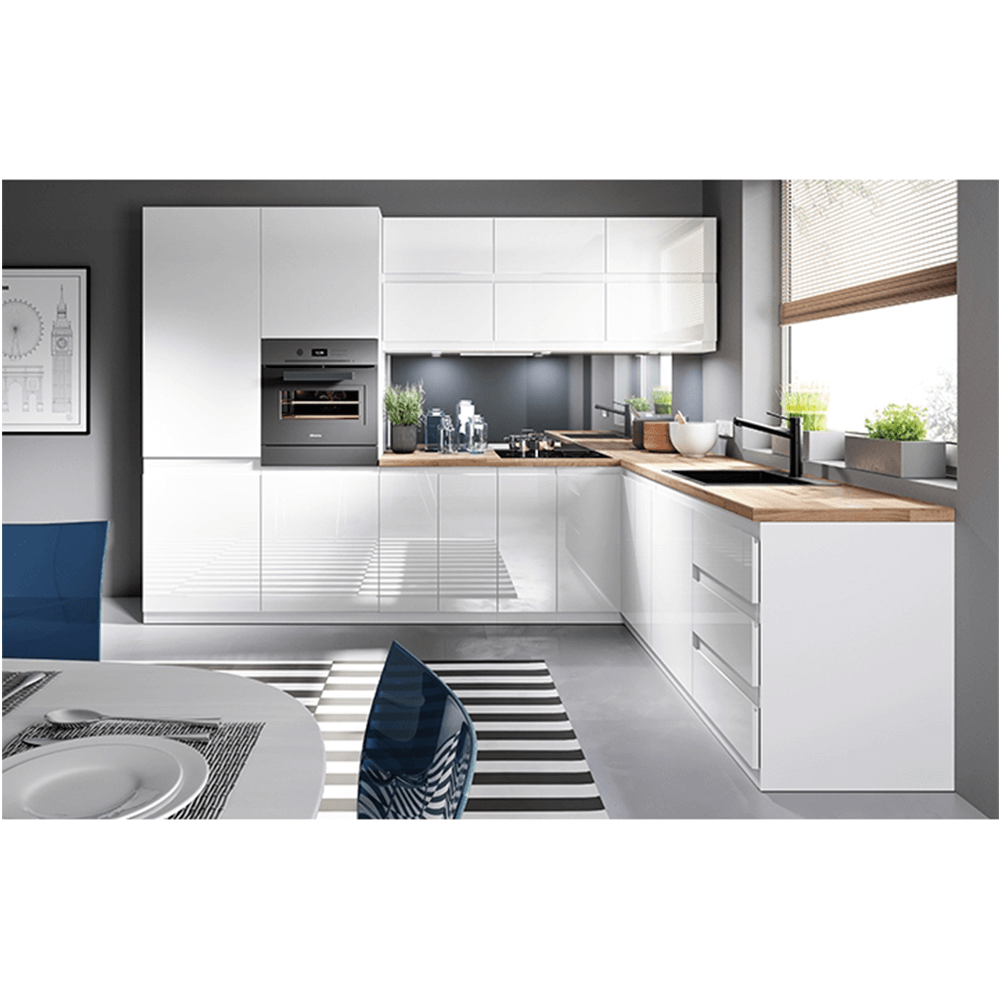 Extra vysoký lesk předních dvířek vnese do kuchyně světlo a jas. Dvířka skříněk jsou vyrobeny z kvalitní MDF, korpus z laminované DTD. Vybírat můžete z množství typů skříněk, což umožňuje poskládat si kuchyňskou linku podle vlastních potřeb, možností a požadavků. Spodní skříňky jsou dodávány včetně soklu. Pracovní deska není součástí skříněk. Je možné si doobjednat pracovní desku v provedení dub lefkas tmavý tloušťky 38 mm která je k této kuchyni doporučována.
