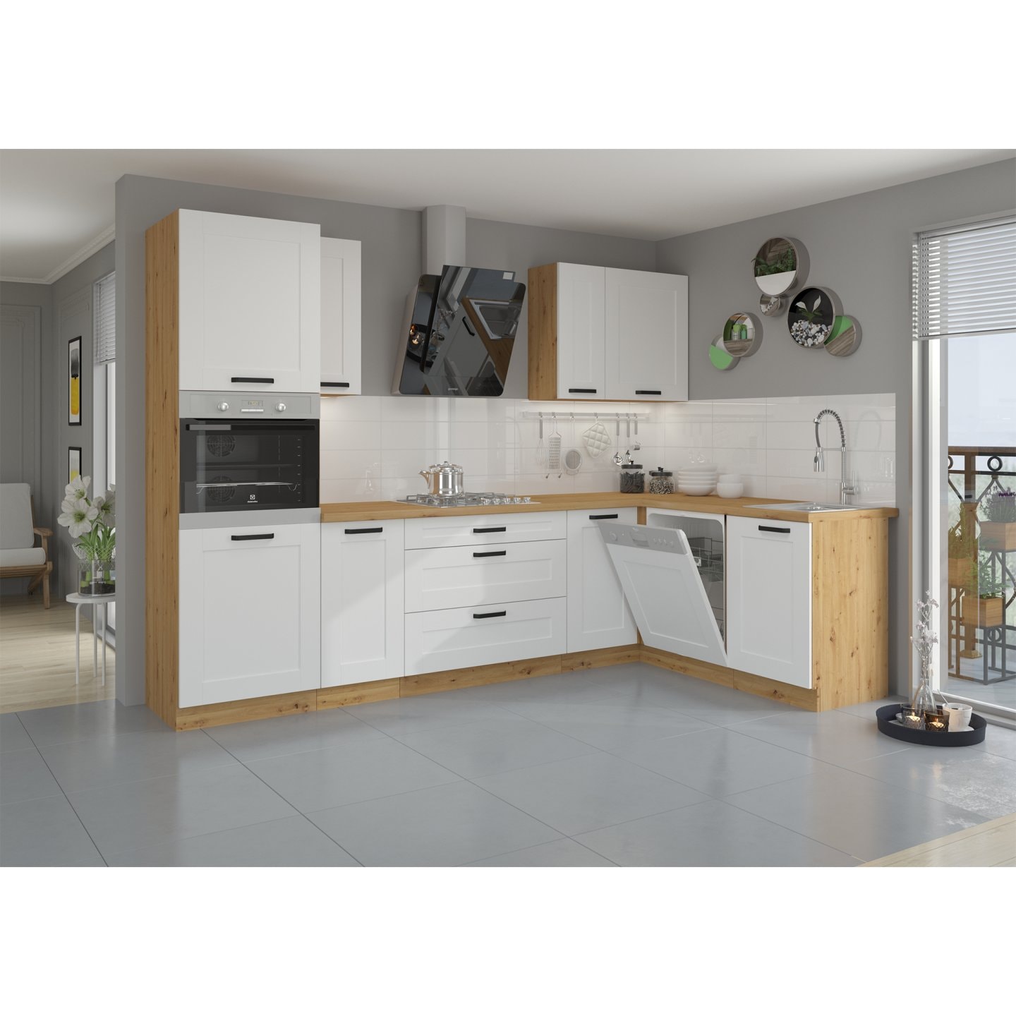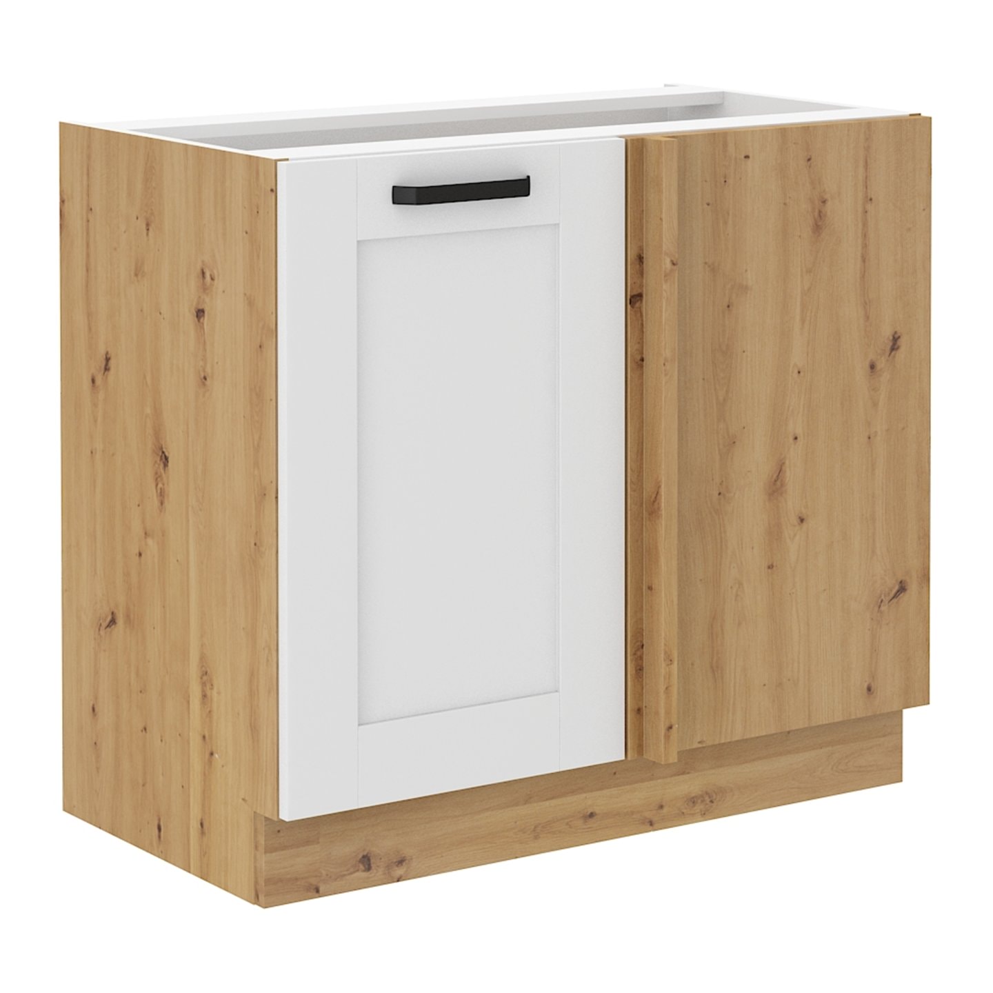 Spodní skříňka LULA 105 ND 1F BB Materiál: laminovaná DTD/MDF Barva: bílá/dub artisan Rozměry (ŠxHxV): 90x52x82 cm Tloušťka materiálu: 1,6 cm Tloušťka dvířek: 2 cm Rohová Skříňka určená do rohu rohové kuchyňské linky Skříňka zabírá v prostoru 105 cm, z důvodu, že je třeba ji odsunout od stěny 15 cm…