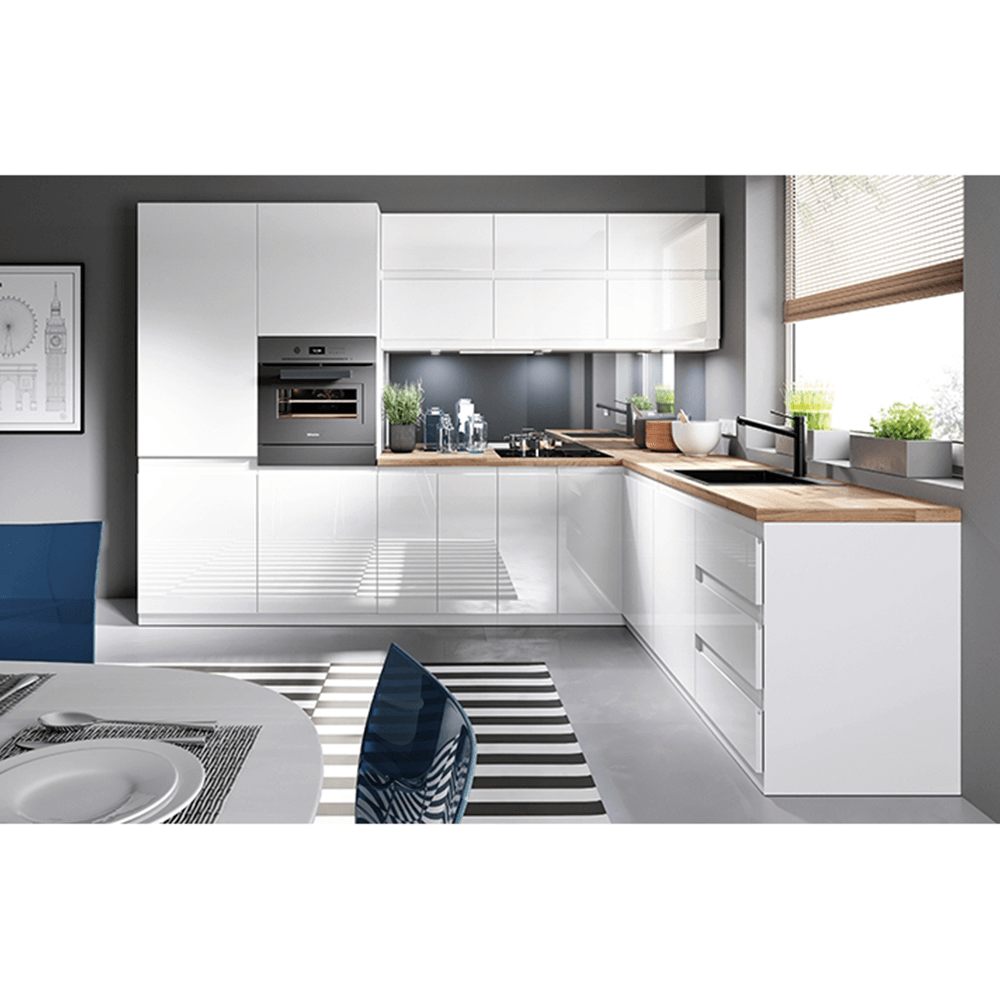Extra vysoký lesk předních dvířek vnese do kuchyně světlo a jas. Dvířka skříněk jsou vyrobeny z kvalitní MDF, korpus z laminované DTD. Vybírat můžete z množství typů skříněk, což umožňuje poskládat si kuchyňskou linku podle vlastních potřeb, možností a požadavků. Spodní skříňky jsou dodávány včetně soklu. Pracovní deska není součástí skříněk. Je možné si doobjednat pracovní desku v provedení dub lefkas tmavý tloušťky 38 mm která je k této kuchyni doporučována.