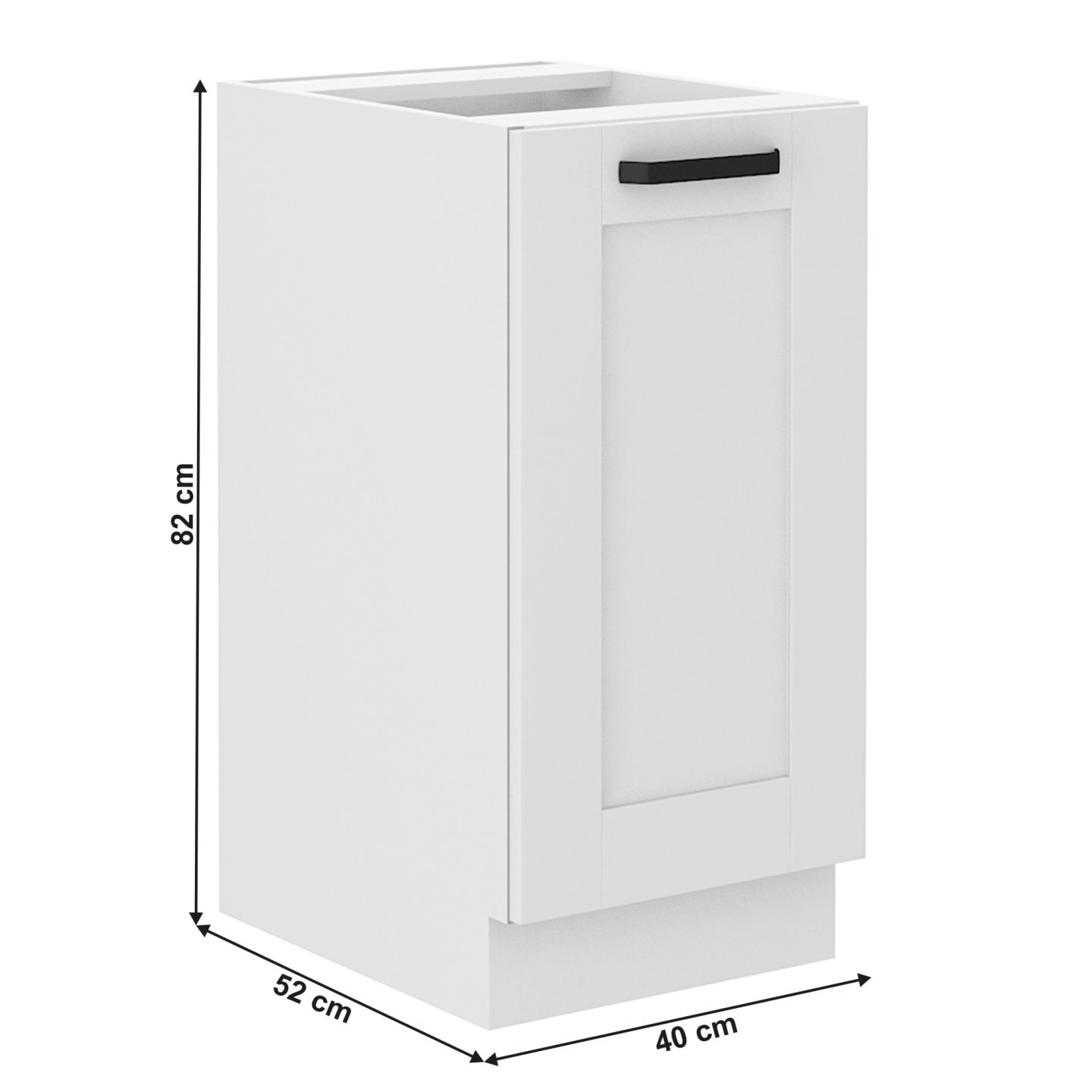 Dolní skříňka LULA 40 D 1F BB je s dvířky v bílém provedení.