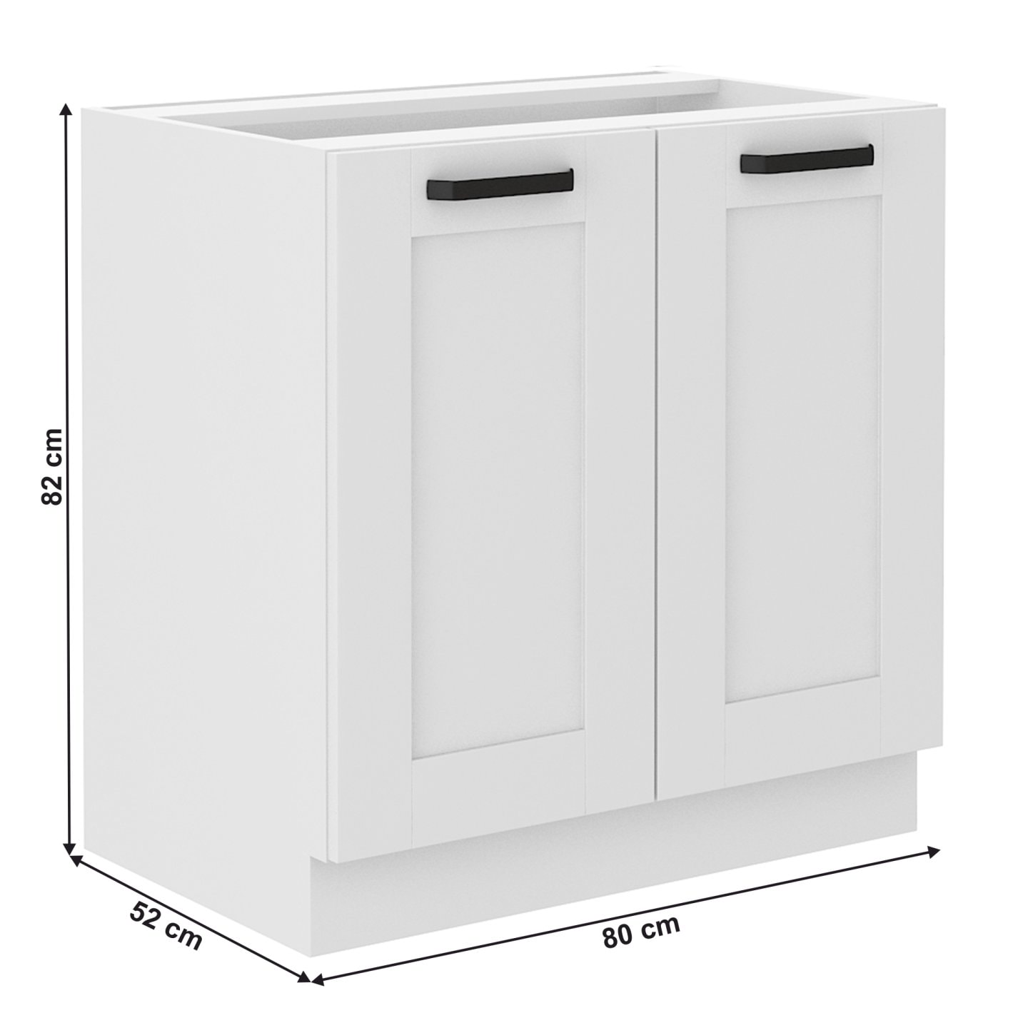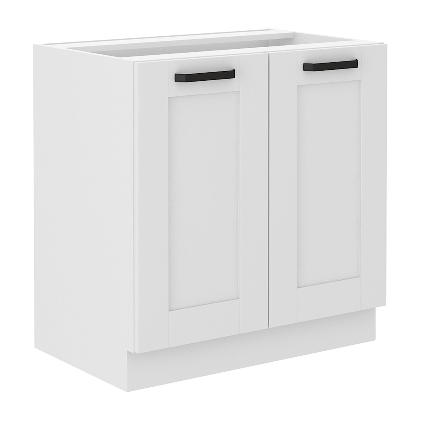 Dolní skříňka LULA 80 D 2F BB je s dvířky v bílém provedení.