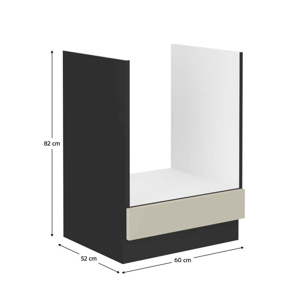 Materiál: laminovaná DTD Barva dvířek: cashmere Barva korpus: černý mat Rozměry (ŠxHxV): 60x52x82 cm Tloušťka materiálu: 1,6 cm Skříňka bez pracovní desky Na vestavný sporák Včetně dolní lišty Možnost dokoupit univerzální dřez LAY ON Dodáváno v demontu Spodní sektorové skříňky jsou dodávány včetně…