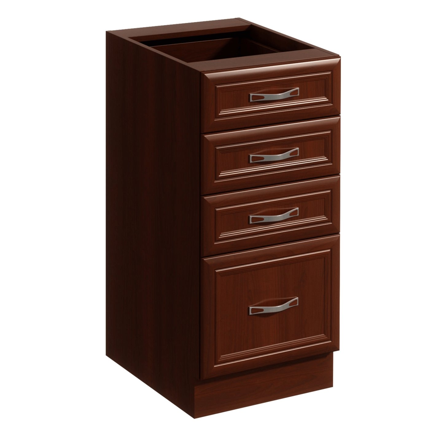 Dolní skříňka D40S4 je se třemi mělčími a jedním hlubším šuplíkem. Šuplíky se otevírají pomocí kovové úchytky. Rustikálně působící lišty jsou z kvalitní MDF.