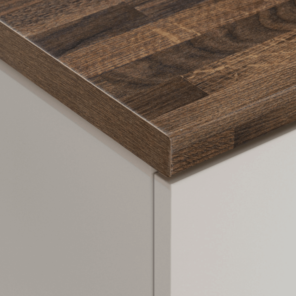 Dolní skříňky ke kuchyni ROYAL jsou dodávány bez pracovní desky a bez soklu. Pracovní desku v provedení dub divoký v tloušťce 3,8 cm lze doobjednat. Ke každé dolní skříňce, kromě rohových skříněk D25PZ, je třeba doobjednat i sokl a 2 kusy úchytů na sokl.