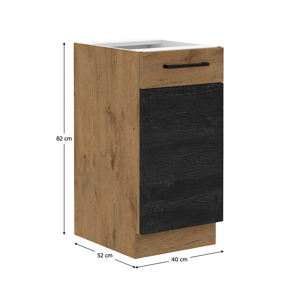 Korpus skříňky je v provedení dub lancelot. Vnitřek skříňky je tvořen jednou praktickou policí. Dvířka mají kovové úchytky a lze je namontovat horizontálně nebo vertikálně (délka 192mm). Dále jsou dvířka vybavena systémem tichého zavírání. Skříňka je vyrobena z kvalitních MDF desek. Poskládejte si z naší bohaté nabídky skříněk moderní a designovou kuchyň podle Vašich představ. Skříňka je dodávaná v demontu. Součástí je montážní plánek včetně všech potřebných spojovacích materiálů.