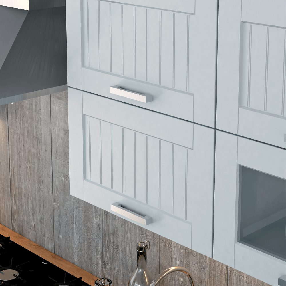 Korpus skříněk je vyroben z DTD laminované, dvířka jsou z MDF. Dávku elegance přinášejí kovové úchyty v provedení matný chrom. Pracovní deska na spodních skříňkách není součástí. Je možné si doobjednat pracovní desku v provedení Gold craft oak o tloušťce 38 mm. Dolní skříňky se dodávají se soklem v bílém provedení.