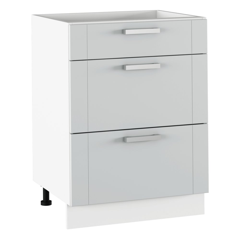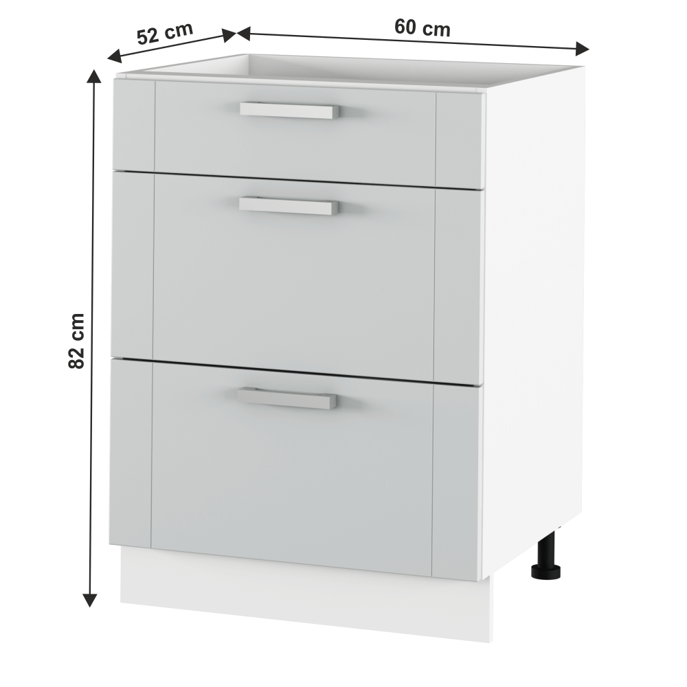 Materiál skříňka: DTD laminovaná / MDFBarva skříňka: světle šedá / bíláMateriál úchytka: kovBarva úchytka: matný chromRozměry (ŠxHxV): 60x52x82 cmTloušťka materiálu: 16 mm3-šuplíkováPlastové nožičkyS úchytkamiDodáváno v demontu