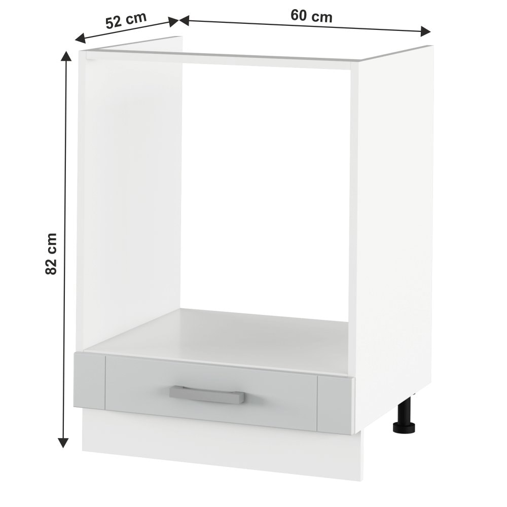 Materiál skříňka: DTD laminovaná / MDFBarva skříňka: světle šedá / bíláMateriál úchytka: kovBarva úchytka: matný chromRozměry (ŠxHxV): 60x52x82 cmRozměry na troubu (ŠxV): 56,8x59Tloušťka materiálu: 16 mmPlastové nožičkyS úchytkouDodáváno se soklemDodáváno v demontu