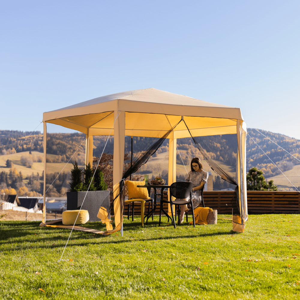 Stanový altán do zahrady, 3,9x2,5x3,9m, béžová / černá, RINGE TYP 2 + 6 bočních stran