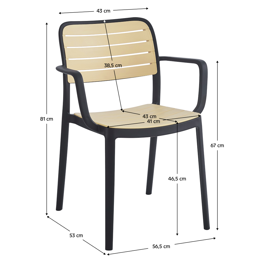 Materiál: plast Barva: černá/béžová Rozměry (ŠxHxV): 56,5x53x81 cm Výška sedu: 46,5 cm Hloubka sedu: 43 cm Šířka sedu: 41 cm Výška zad: 38,5 cm Šířka zad: 43 cm Nosnost: 100 kg Hmotnost: 5,3 kg Stohovatelná Vhodná do interiéru i exteriéru Dodáváno v monte