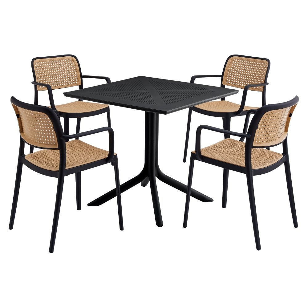 Materiál: plast Barva:černá/béžová Rozměry (ŠxHxV): 57x54x80,5 cm Výška sedu: 47 cm Hloubka sedu: 43 cm Šířka sezení: 41 cm Výška zad: 38,5 cm Šířka zad: 43 cm Nosnost: 100 kg Stohovatelná Vhodná do interiéru i exteriéru Dodáváno v monte