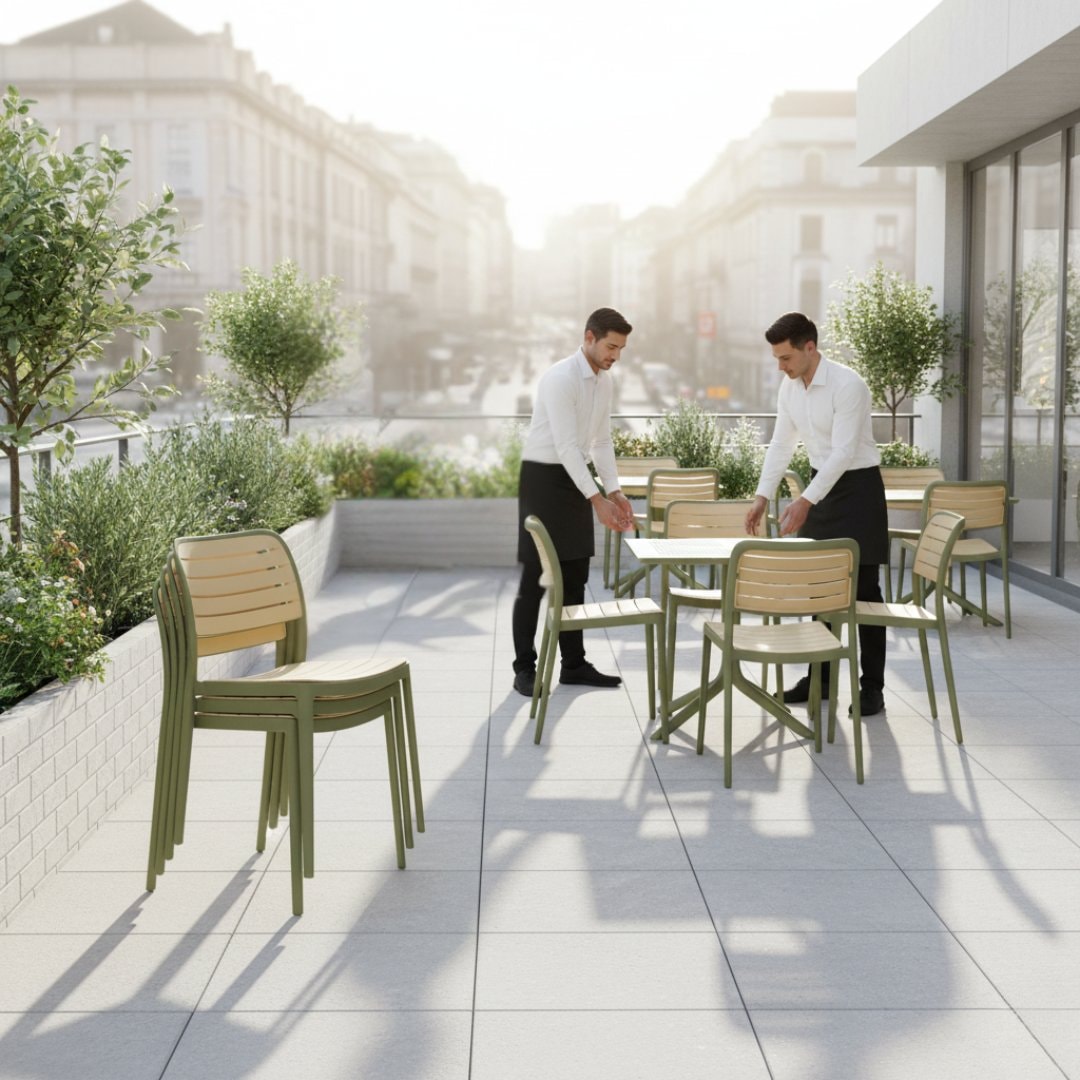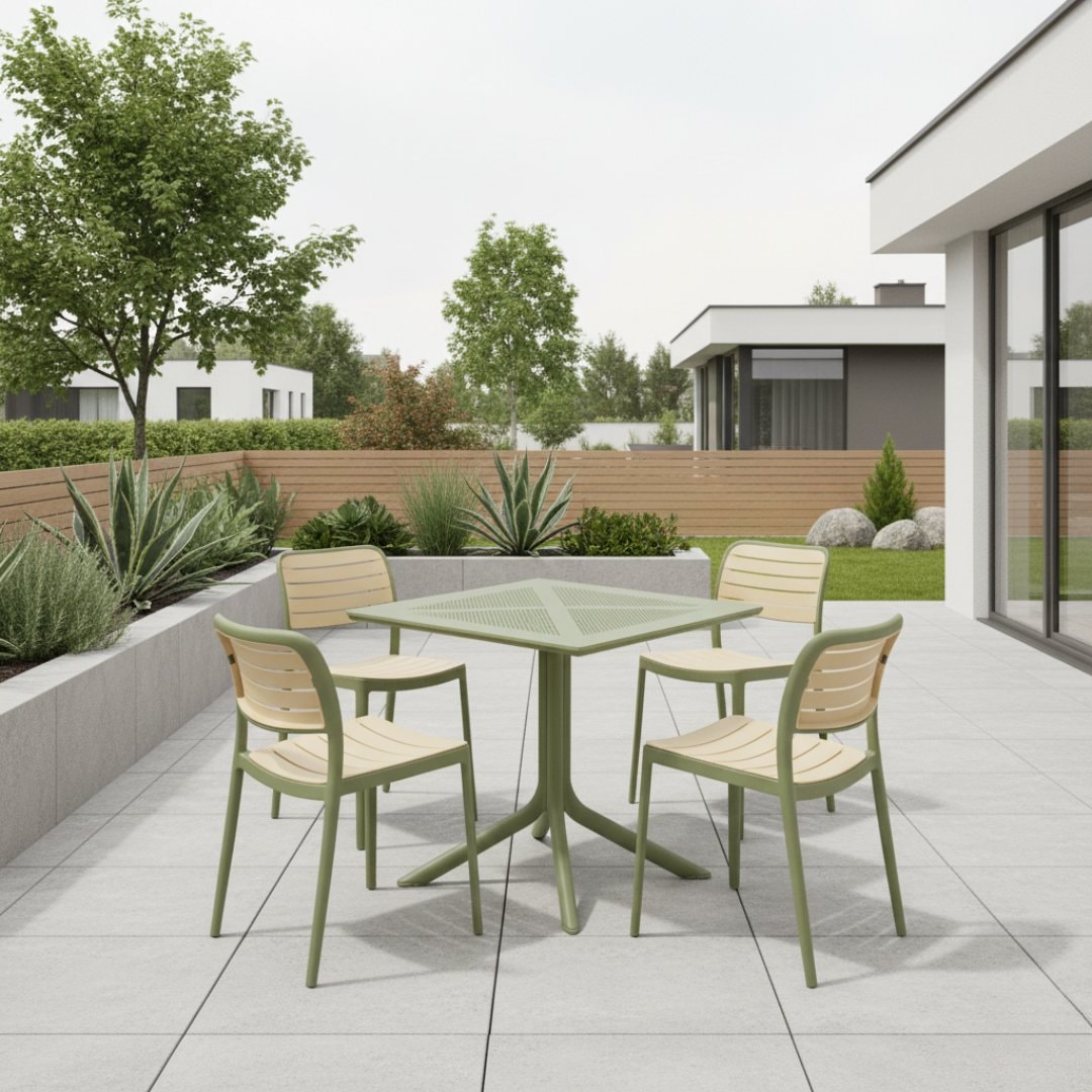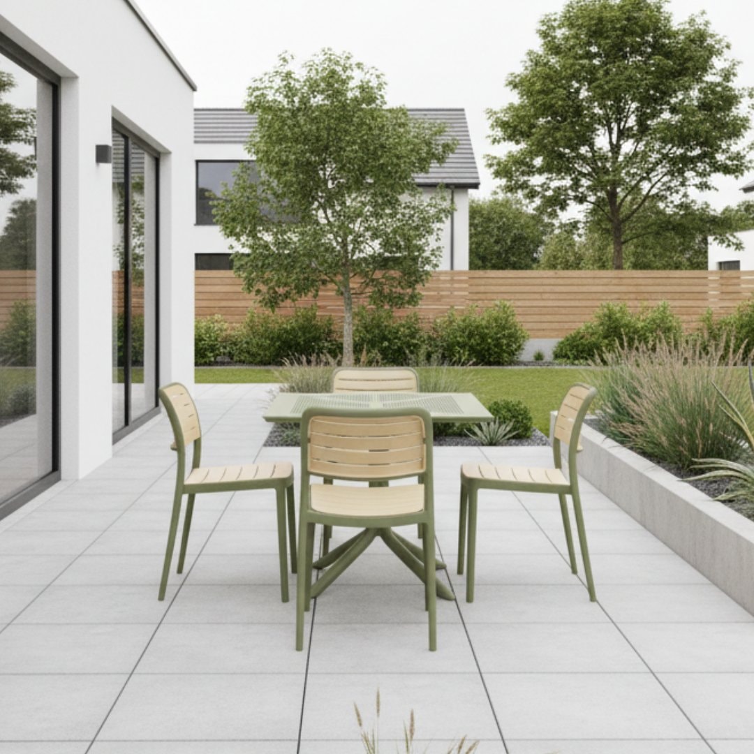 Vyrobena je z kvalitního plastu v kombinaci zelené na konstrukci a béžové na opěradle a sedáku. Její velkou předností je stohovatelnost, což znamená, že ji můžete pokládat na sebe a s lehkostí přemístit, kde právě potřebujete.