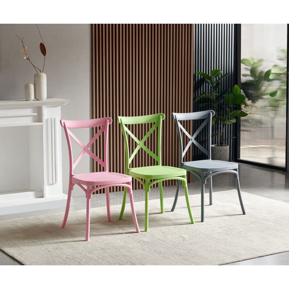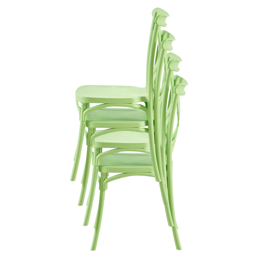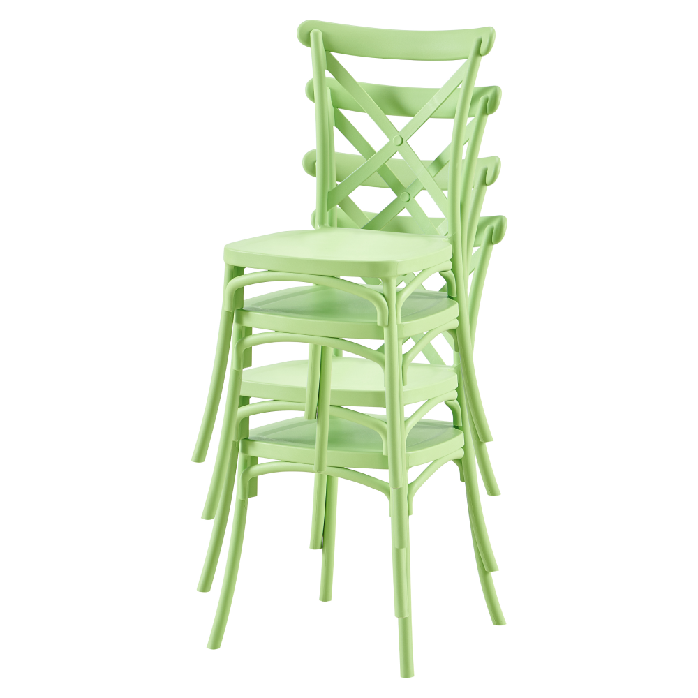 Charakteristická je svojí funkcí stohovatelnosti, což znamená, že pokud jich máte v domácnosti více, můžete je prakticky poskládat na sebe a vkusně, bez starostí přemístit kdekoli chcete. Vyrobena je z plastu v zelené barvě. Uspěje v jídelně, na terase, ale také na zahradě, balkoně či firemní akci.
