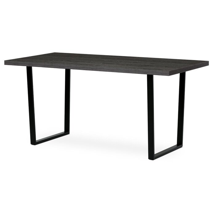 Jídelní stůl o rozměrech 160x80x76 cm kombinuje desku z lamina s dekorem šedého dubu a pevnou kovovou podnož v černém matném provedení. Deska je opatřena ABS hranou, která chrání okraje proti poškození a usnadňuje údržbu. Stabilní kovová konstrukce podnože zajišťuje pevnost a dlouhou životnost stolu, přičemž materiály jsou navrženy tak, aby odolávaly běžnému opotřebení a snadno se udržovaly v čistotě. Díky svým rozměrům a neutrálnímu designu je vhodný pro různé typy interiérů, kde poskytuje dostatek prostoru pro pohodlné stolování.