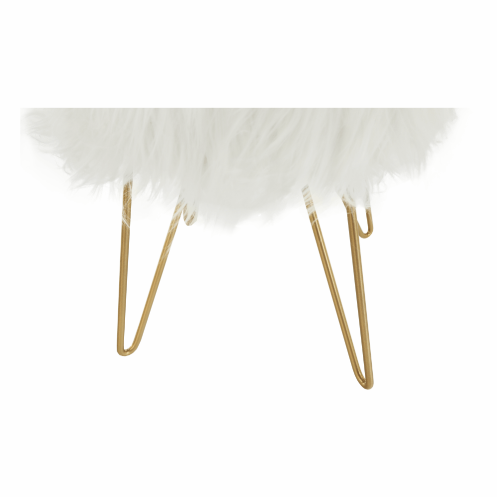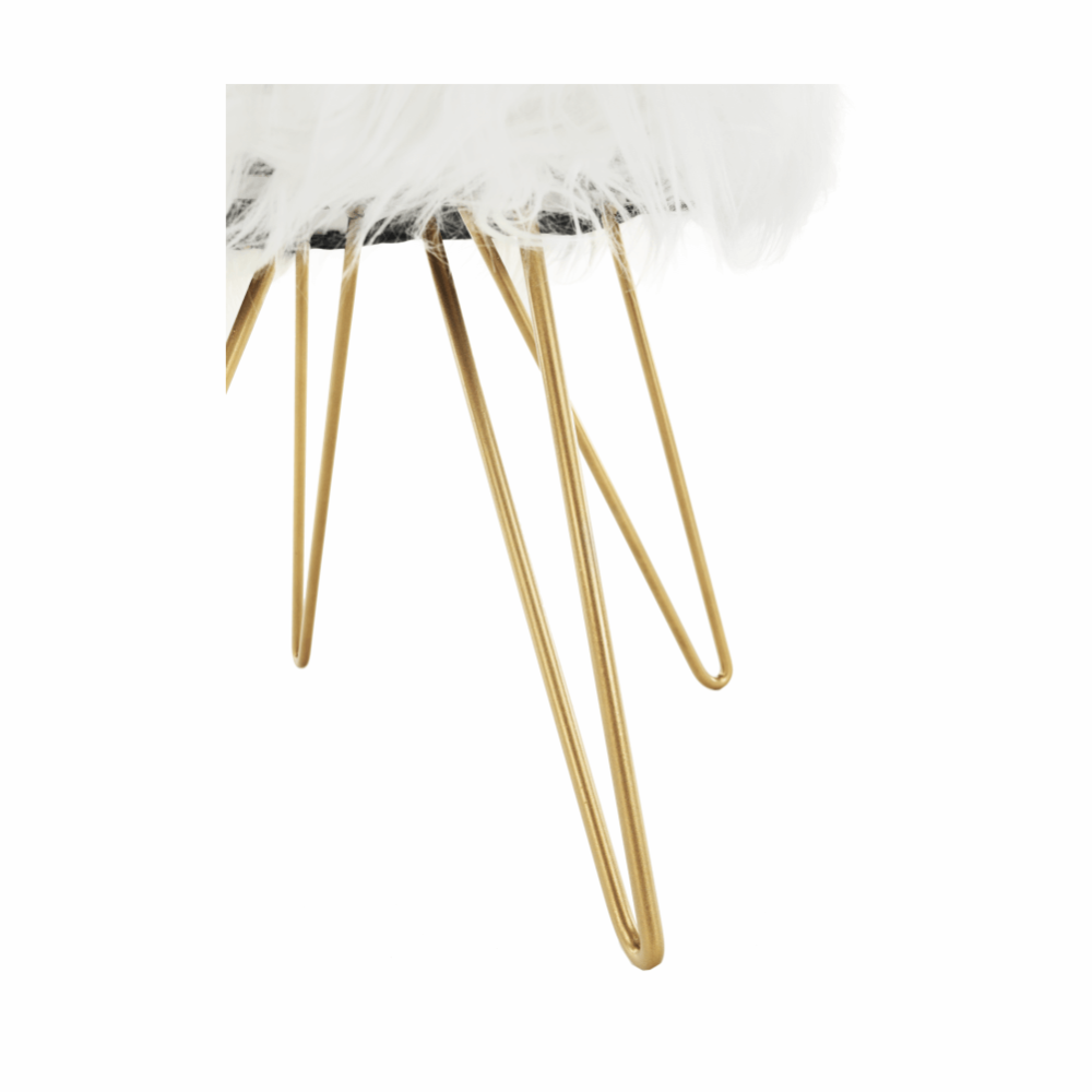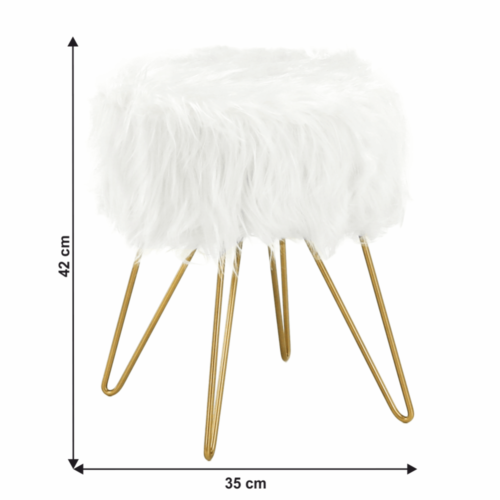 Materiál: umělá kožešina / kov Oděruodolnost textilie podle testu Martindale: 87 000 oděrek Barva: bílá / zlatý nátěr Rozměry (ŠxHxV): 35x35x42 cm Nosnost: 80 kg Dodávané v monte.