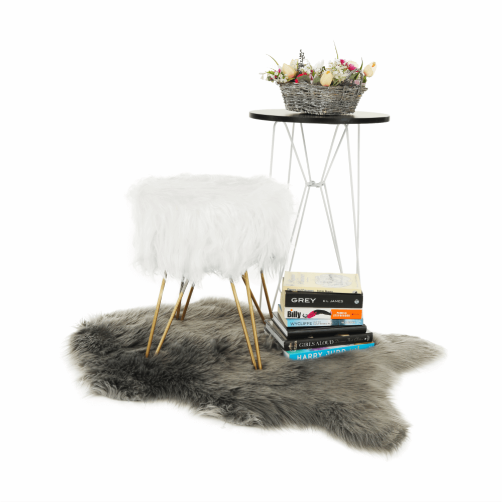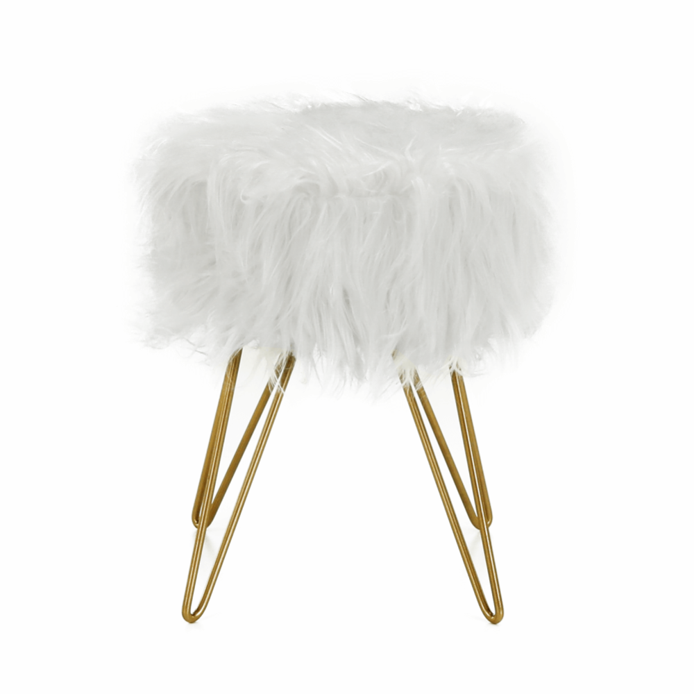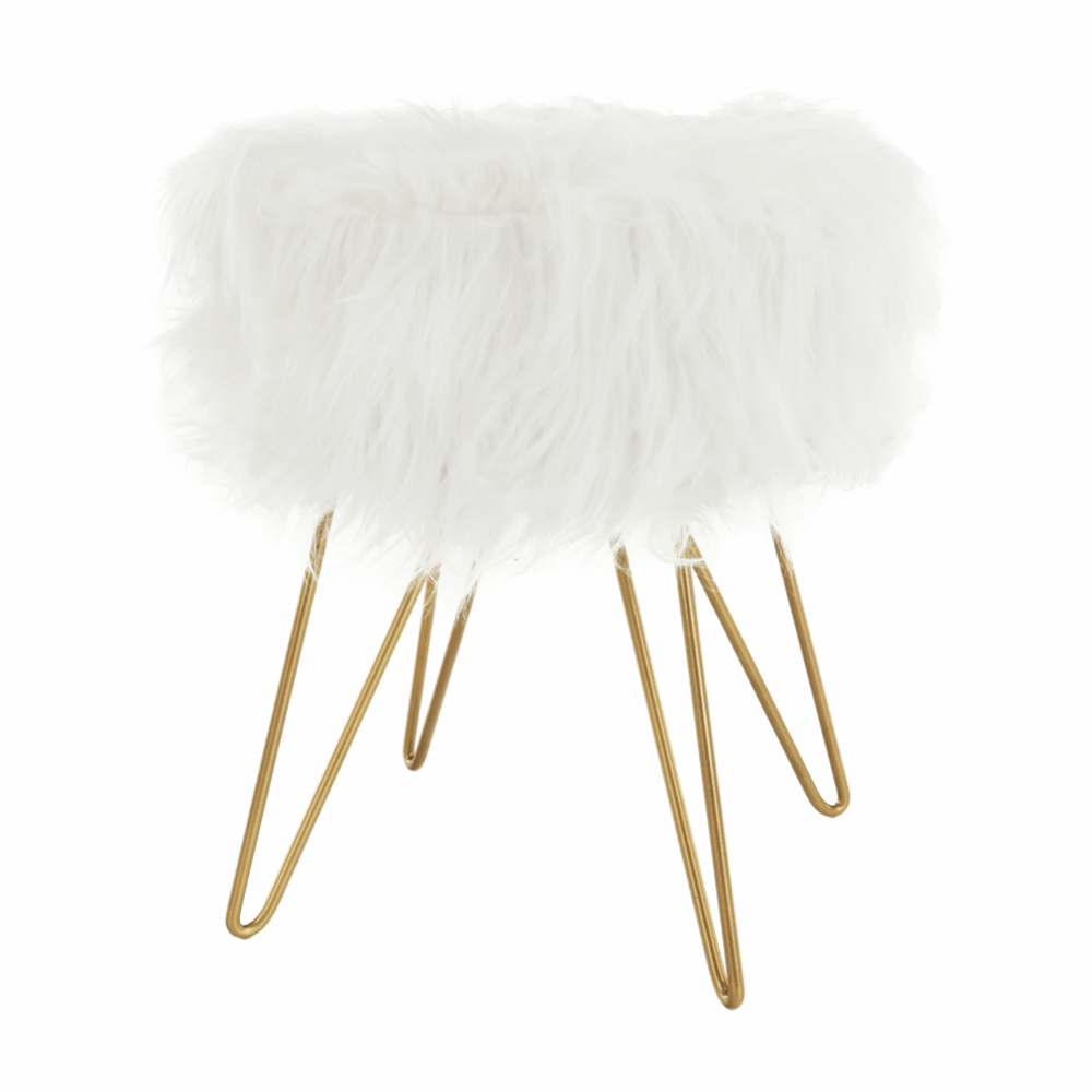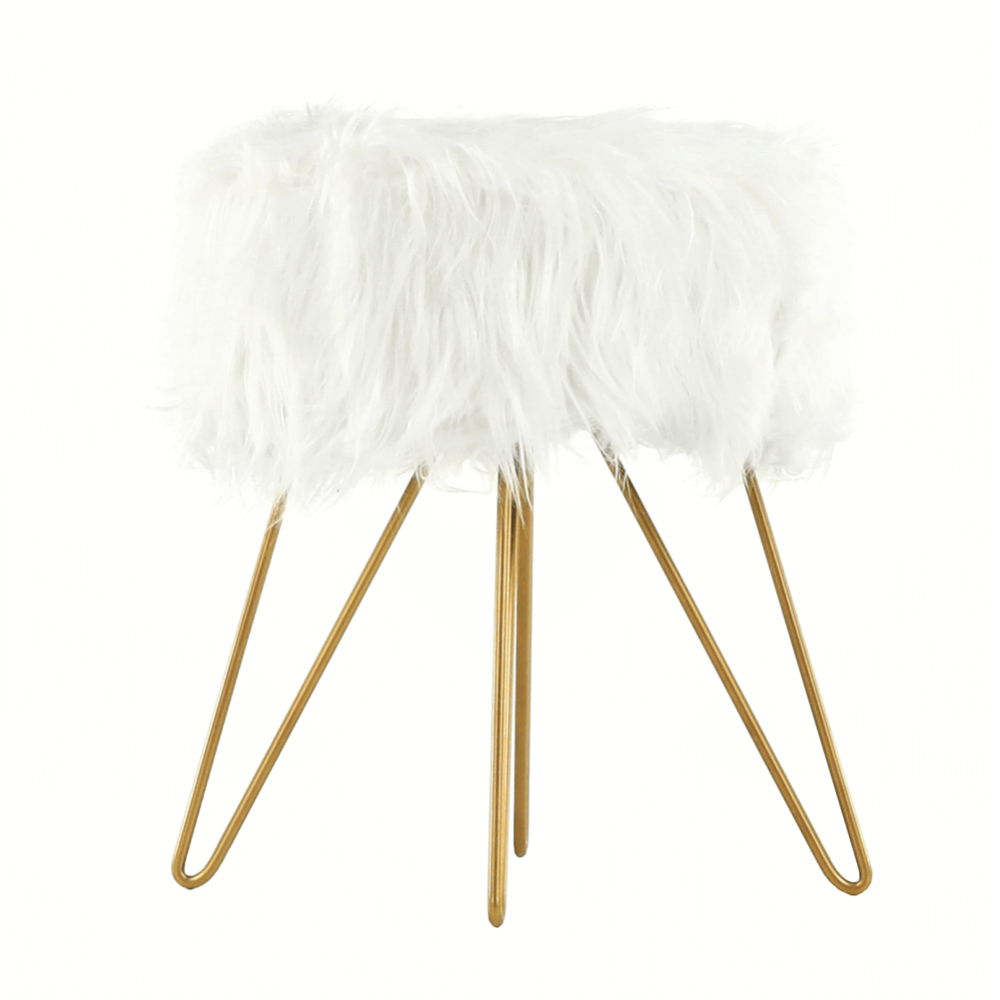 Materiál: umělá kožešina / kov Oděruodolnost textilie podle testu Martindale: 87 000 oděrek Barva: bílá / zlatý nátěr Rozměry (ŠxHxV): 35x35x42 cm Nosnost: 80 kg Dodávané v monte.