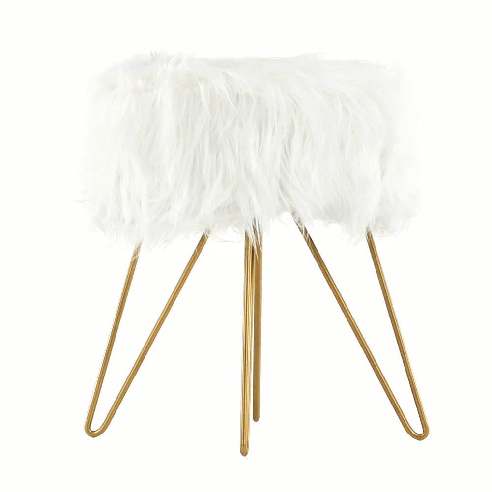 Materiál: umělá kožešina / kov Oděruodolnost textilie podle testu Martindale: 87 000 oděrek Barva: bílá / zlatý nátěr Rozměry (ŠxHxV): 35x35x42 cm Nosnost: 80 kg Dodávané v monte.
