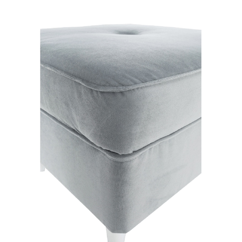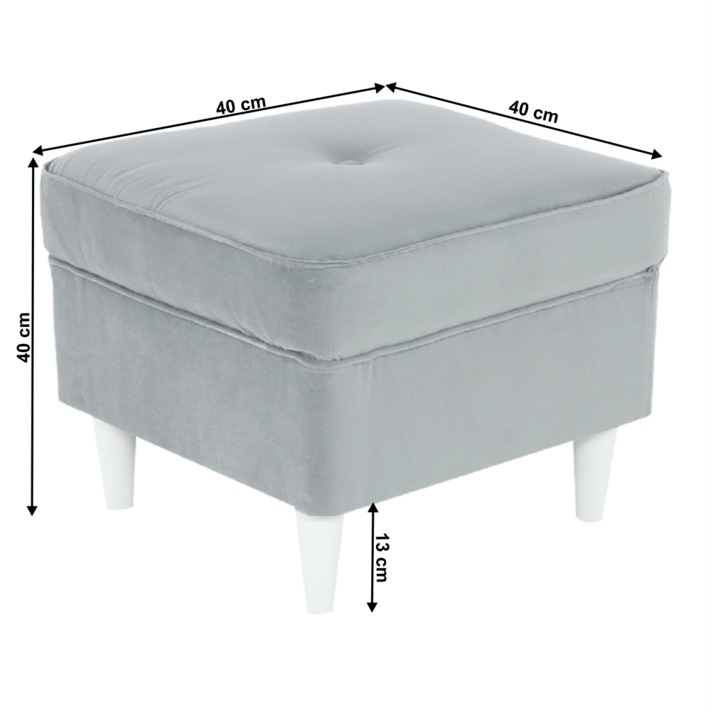 Moderní taburet RUFINO 3 NEW Materiál: látka Trinity / dřevo Oděruodolnost textilie podle testu Martindale: 55 000 oděrek Barva: světlešedá / bílá Rozměry: (ŠxHxV): 40x40x40 cm Výška spodního prostoru od podlahy: 13 cm Nosnost na osobu: 110 kg Dodávány v monte.
