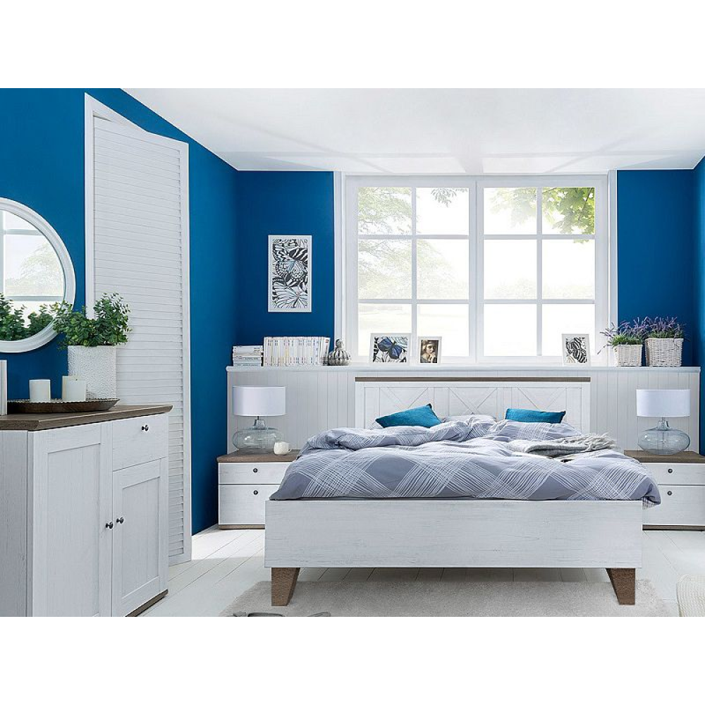 Elegantní manželská postel Timika LO180 je vyrobena z lamina v barevné kombinaci borovice bílá anderson/dub sonoma tmavý.