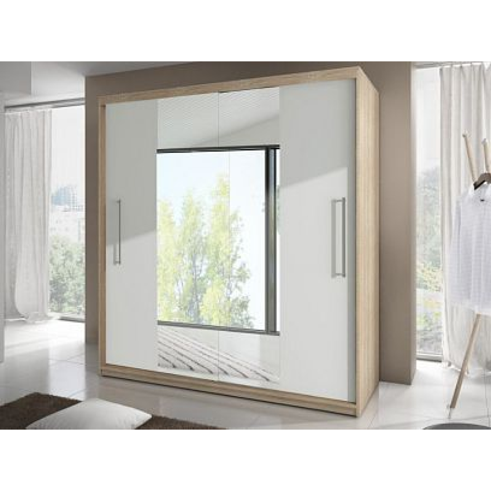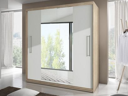 Prostorná šatní skříň Toronto je vyrobena z lamina v barvě dub sonoma + zrcadlo.
