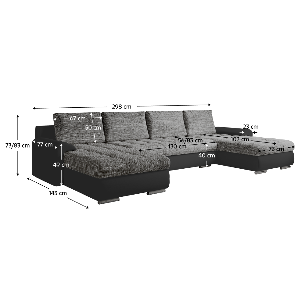 Rozměry (ŠxHxV): 298x143x73/83 cm