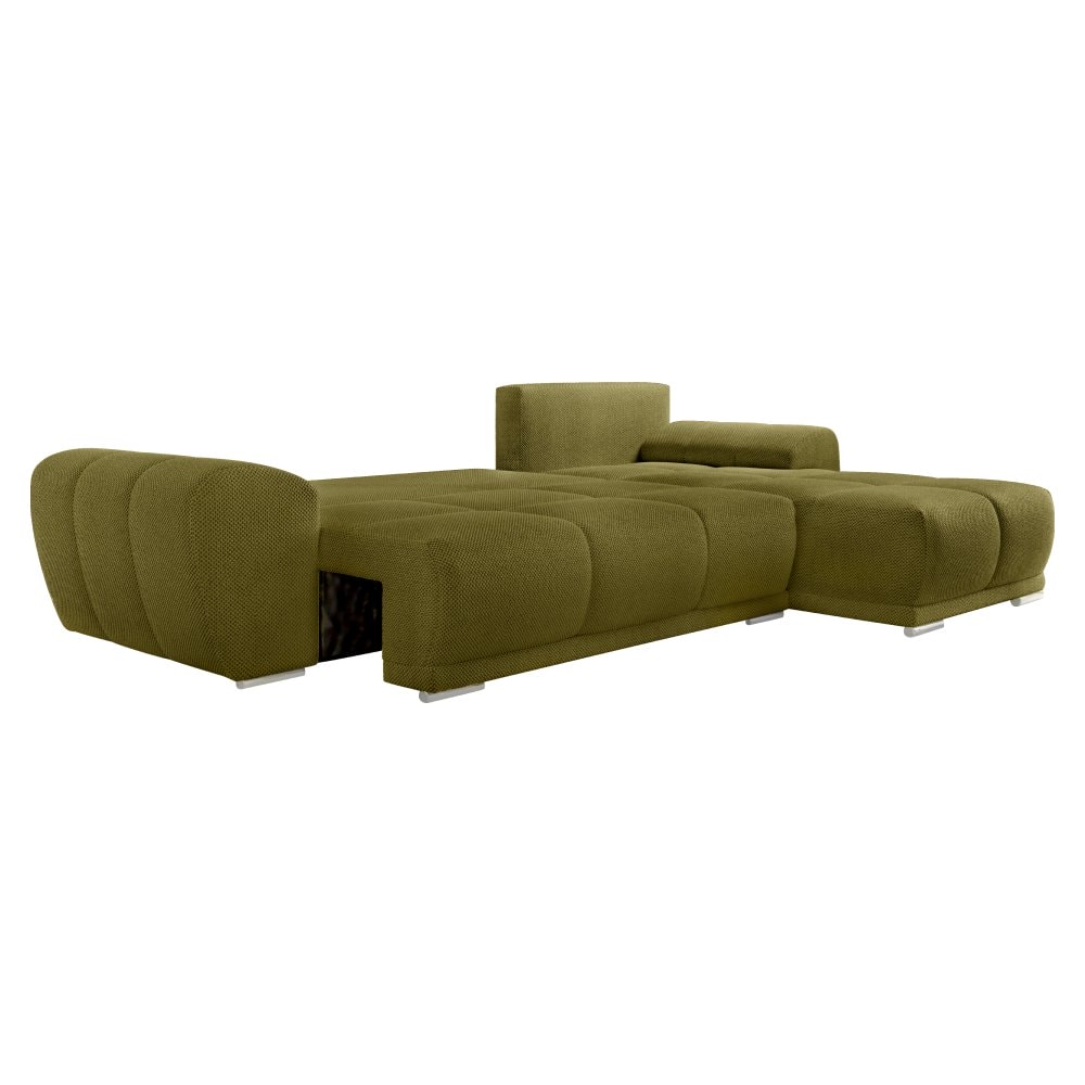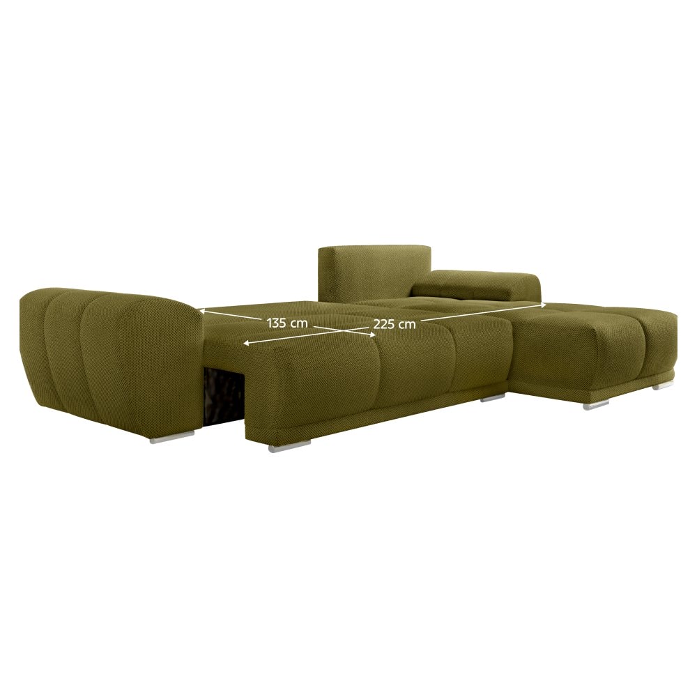 Je celočalouněná látkou Curio v barevném provedení olivová. Nebojte se ji umístit do prostoru a nechat tak vyniknout její krásu. Je univerzální, což znamená, že ji můžete umístit v levém nebo pravém provedení dle vašich potřeb. Maximální komfort sezení zajišťuje výplň z vlnovcových pružin a PUR pěny. Velkým plusem sedací soupravy je úložný prostor, kde umíte prakticky uložit všechny deky a polštáře, které v dané chvíli nepotřebujete. Vyniká funkcí rozkladu, která se postará o plnohodnotný odpočinek a relaxaci s komfortní plochou na spaní. Součástí sedací soupravy jsou i polštáře, které se postarají o pohodlné opření zad. Stojí na stříbrných plastových nožičkách, které sedačce KERIM ROH dodávají eleganci a styl.