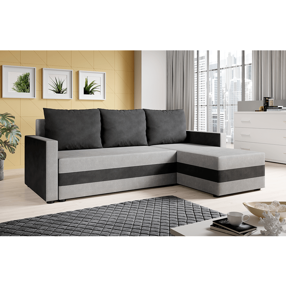 Představujeme vám sedací soupravu PAULITA NEW. Díky provedení šedé a černé látky vnese do každé domácnosti nadčasovou atmosféru. Lenošení může začít, díky funkci rozkladu proměníte sedačku na lůžko o ploše 119x199 cm. Užijte si chvíle s rodinou bez omezení. Sedací souprava je univerzální, to znamená, že ji můžete poskládat podle vlastní potřeby s rohem na pravé nebo levé straně. Určitě oceníte i úložný prostor, který rozhodně nezůstane nevyužití. Paulita New je prostě sedací souprava, kterou si zamiluje celá rodina.