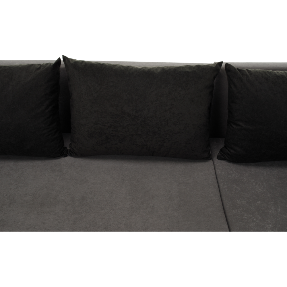 Materiál čalounění: látka Alova 36/04 Oděruodolnost textilie podle testu Martindale: 85 000 oděrů Barva čalounění: šedá/černá Rozměry (ŠxHxV): 287x139/139x74/86 cm Plocha na spaní (ŠxD): 115x265 cm Výška sedu: 39 cm Hloubka sedu: 42/64 cm Dodávána s polštáři Rozměr polštáře (ŠxV): 65x46 cm Šířka…