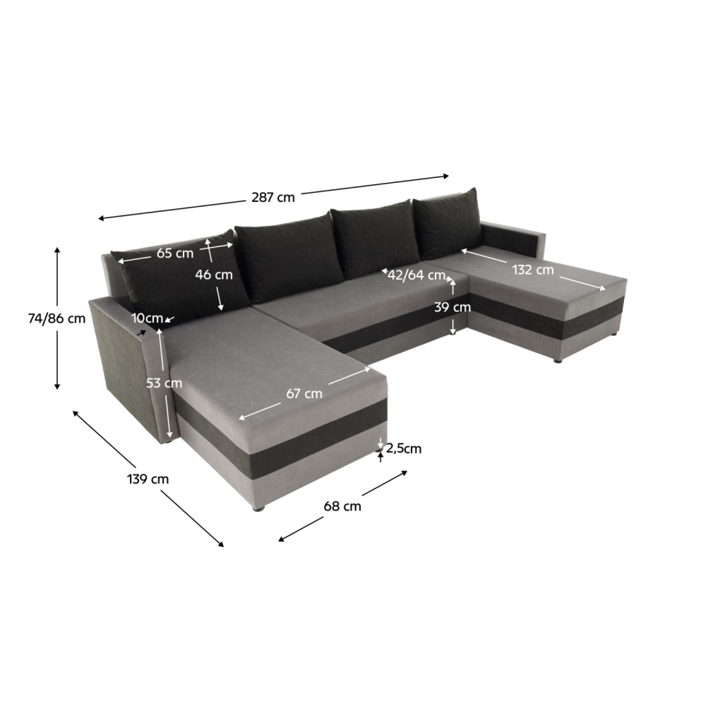 Rozměry (ŠxHxV): 287x139/139x74/86 cm