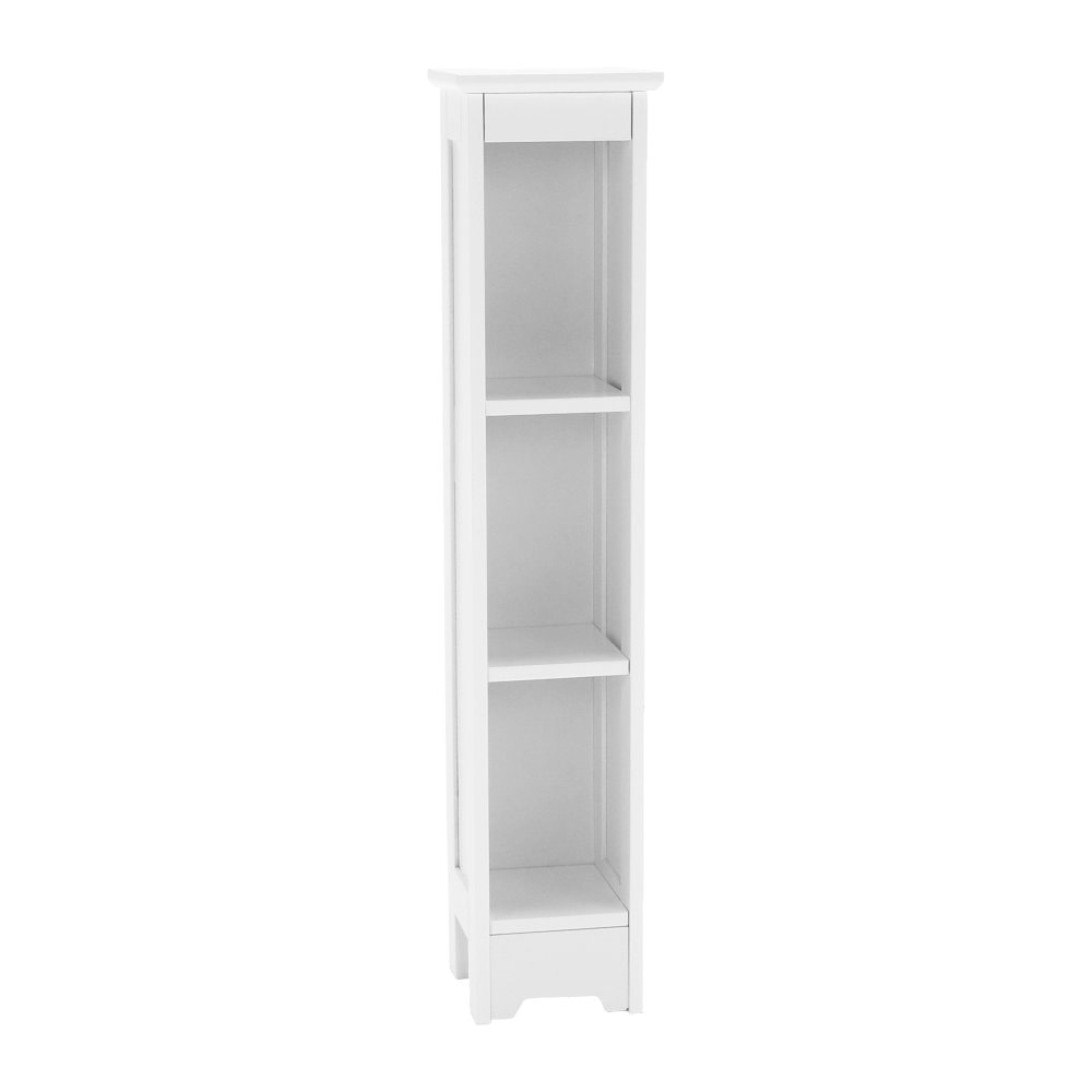 Úzký regál ATENE typ 6 je součástí moderní koupelnové sestavy ATENE. Regál je otevřený se dvěmi policemi, kde si můžete uložit hygienické potřeby, ručníky nebo čisticí prostředky.