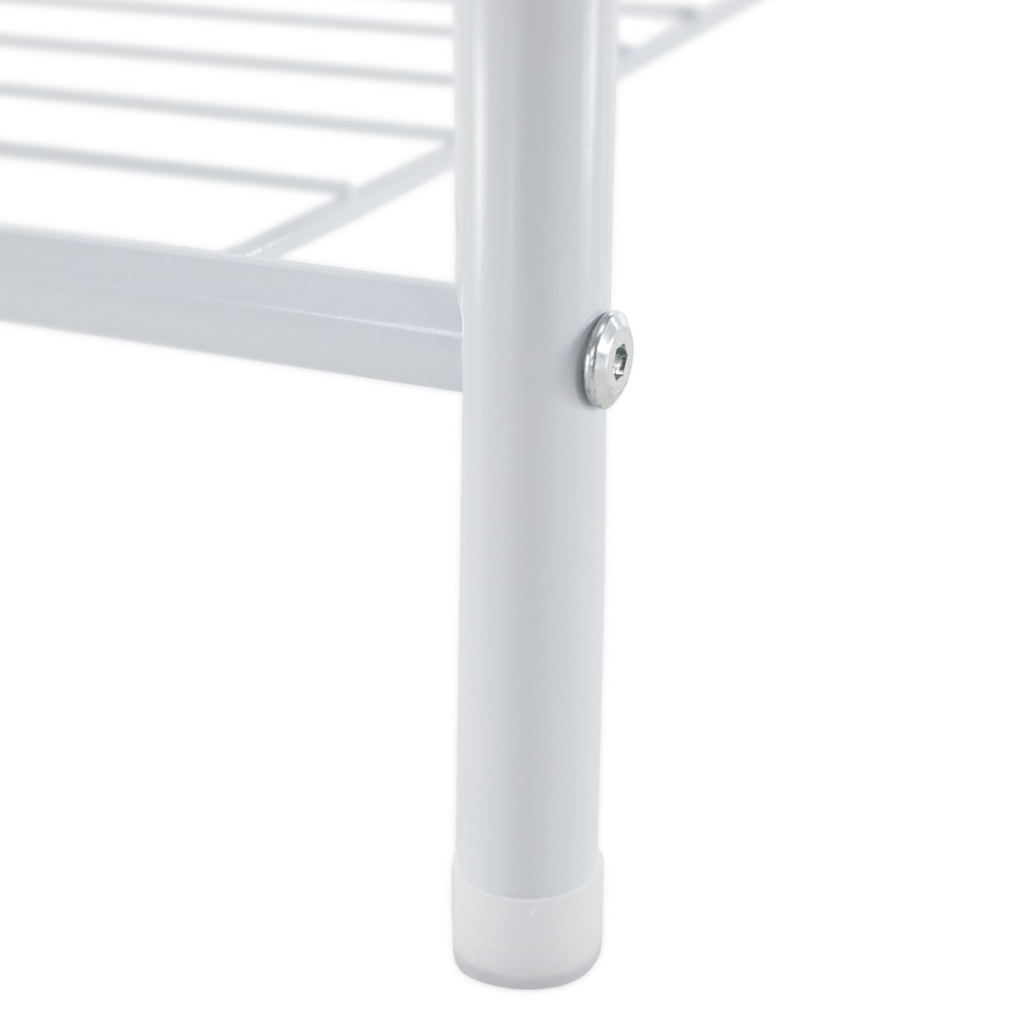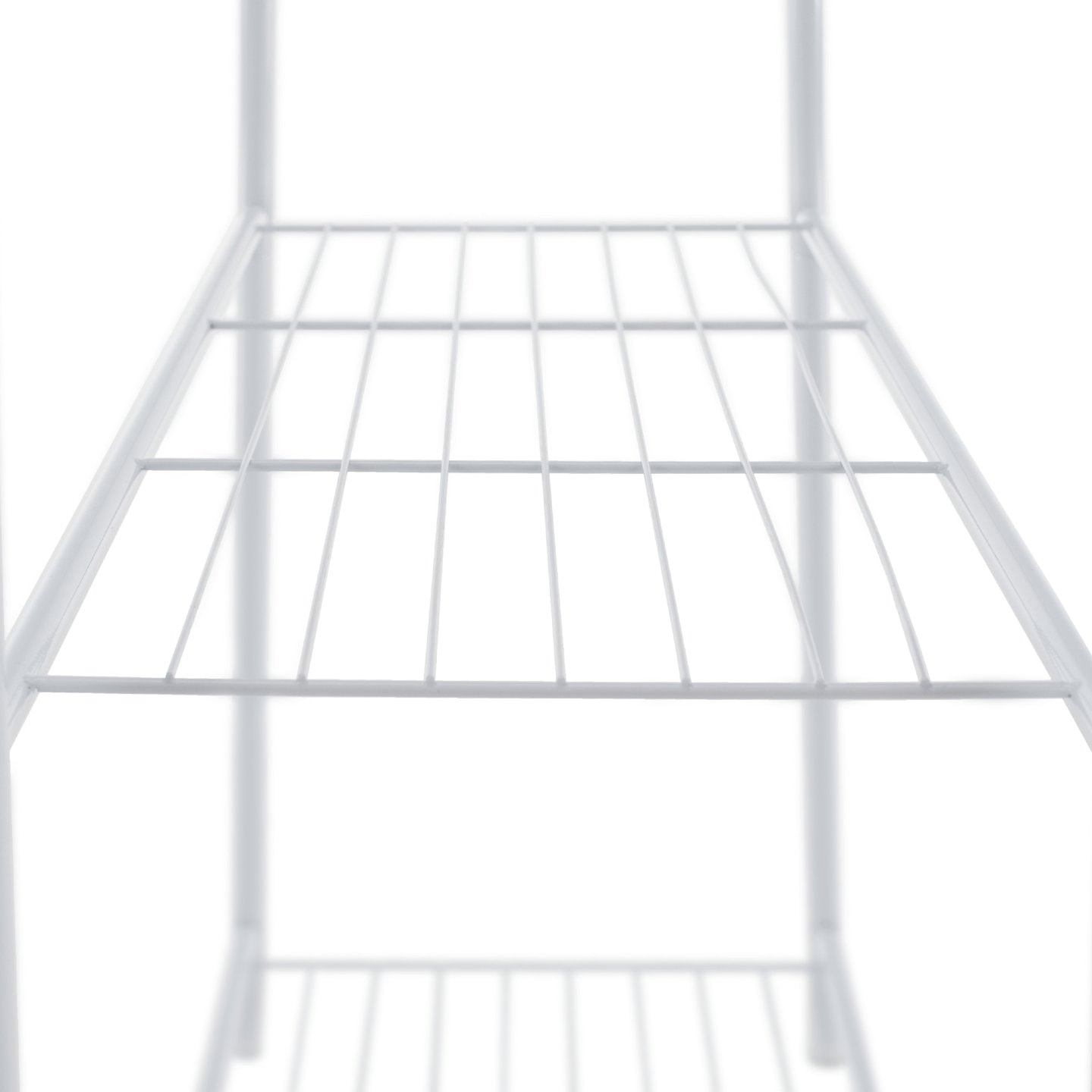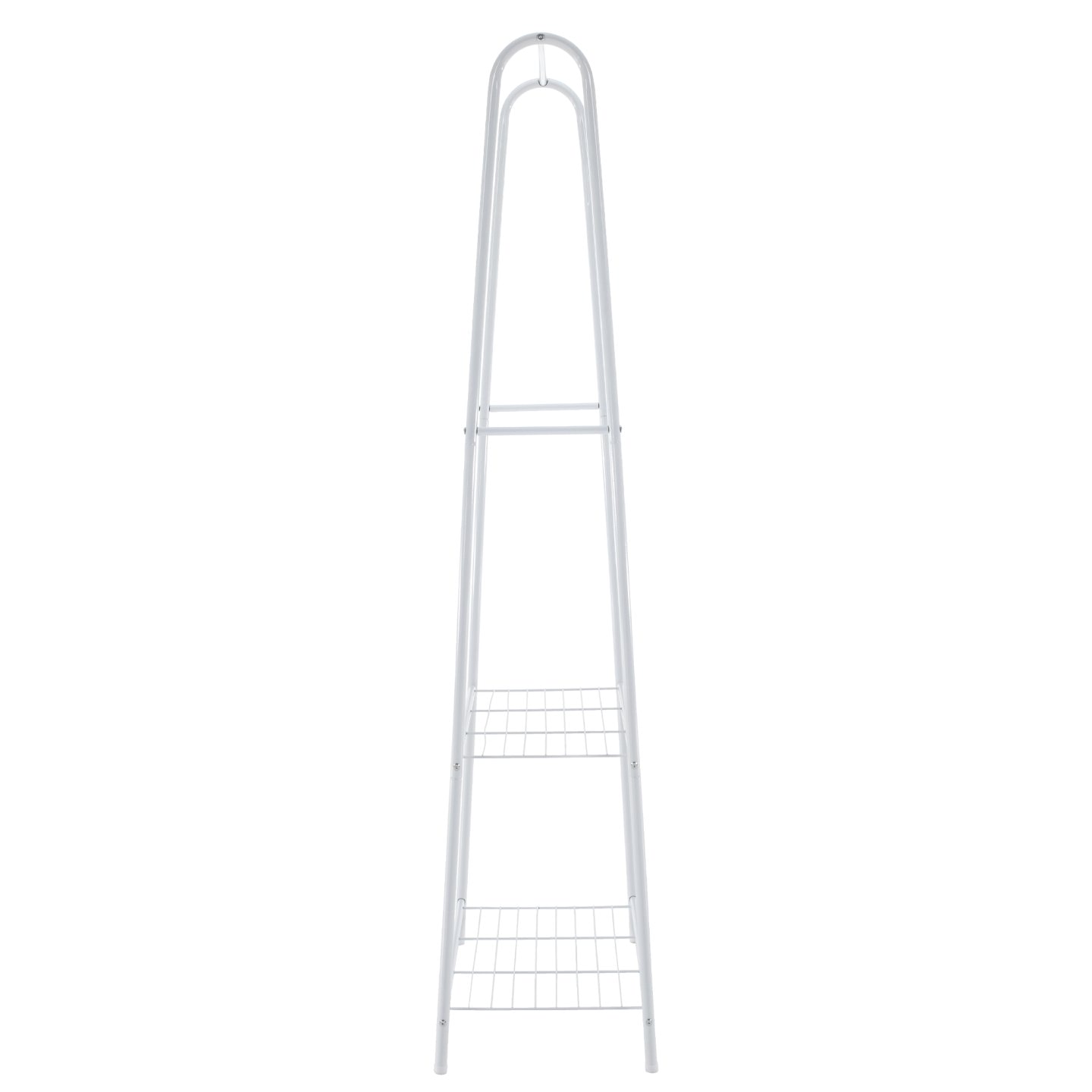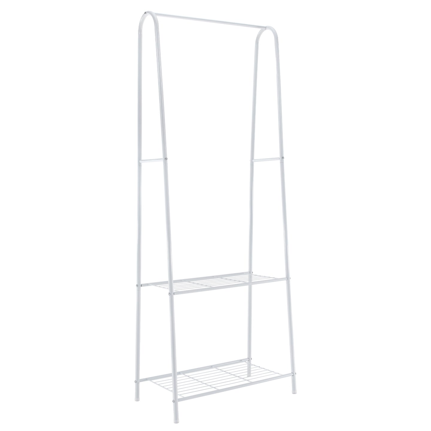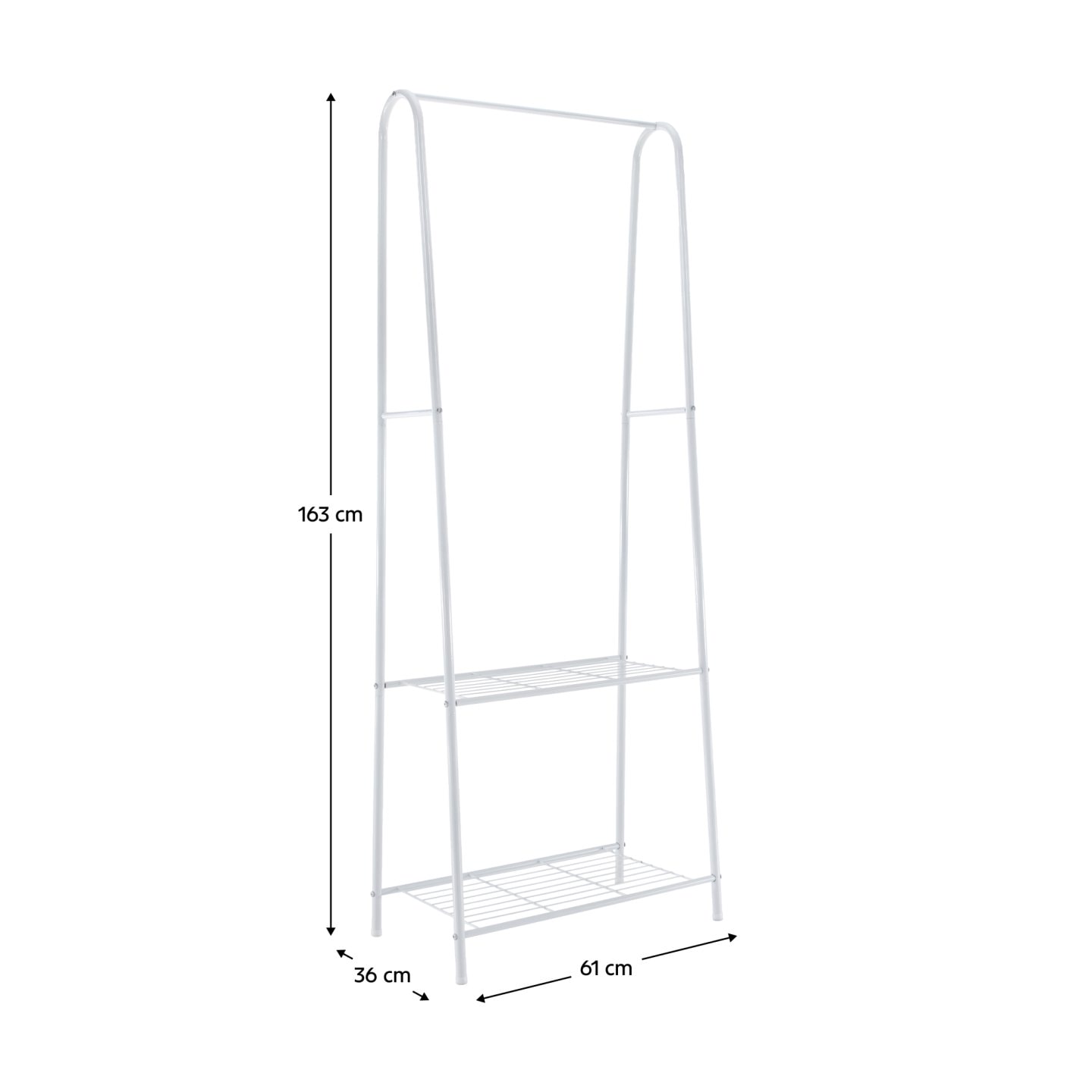 Materiál: kov Barva: bílá Rozměry (ŠxHxV): 61x36x163 cm věšáková tyč dvě police bez háčků Háčky nejsou součástí Na oblečení a doplňky Nosnost: 20 kg Dodávané v demontu