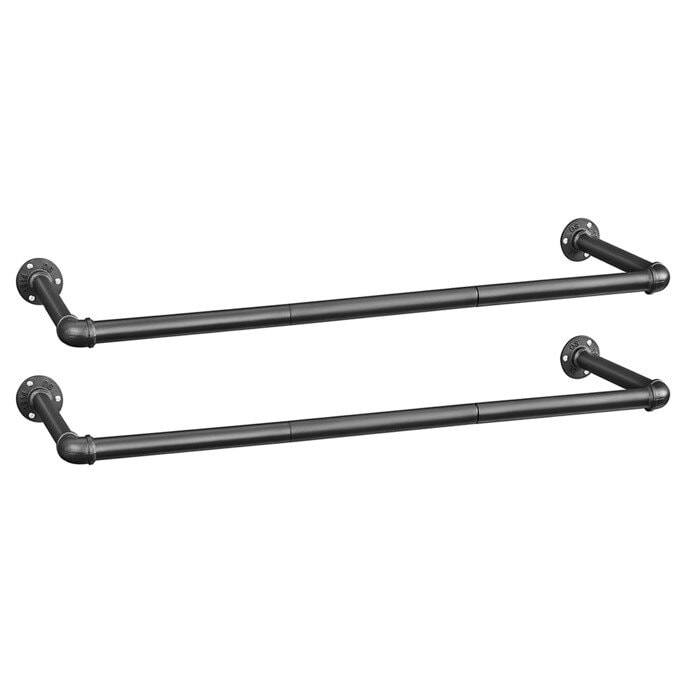 Jeho jednoduchý a nadčasový design se snadno integruje do různých interiérů, od moderních po industriální styly. Věšák je tvořen dvěma samostatnými tyčemi s pevnými úchyty pro bezpečné připevnění na stěnu.