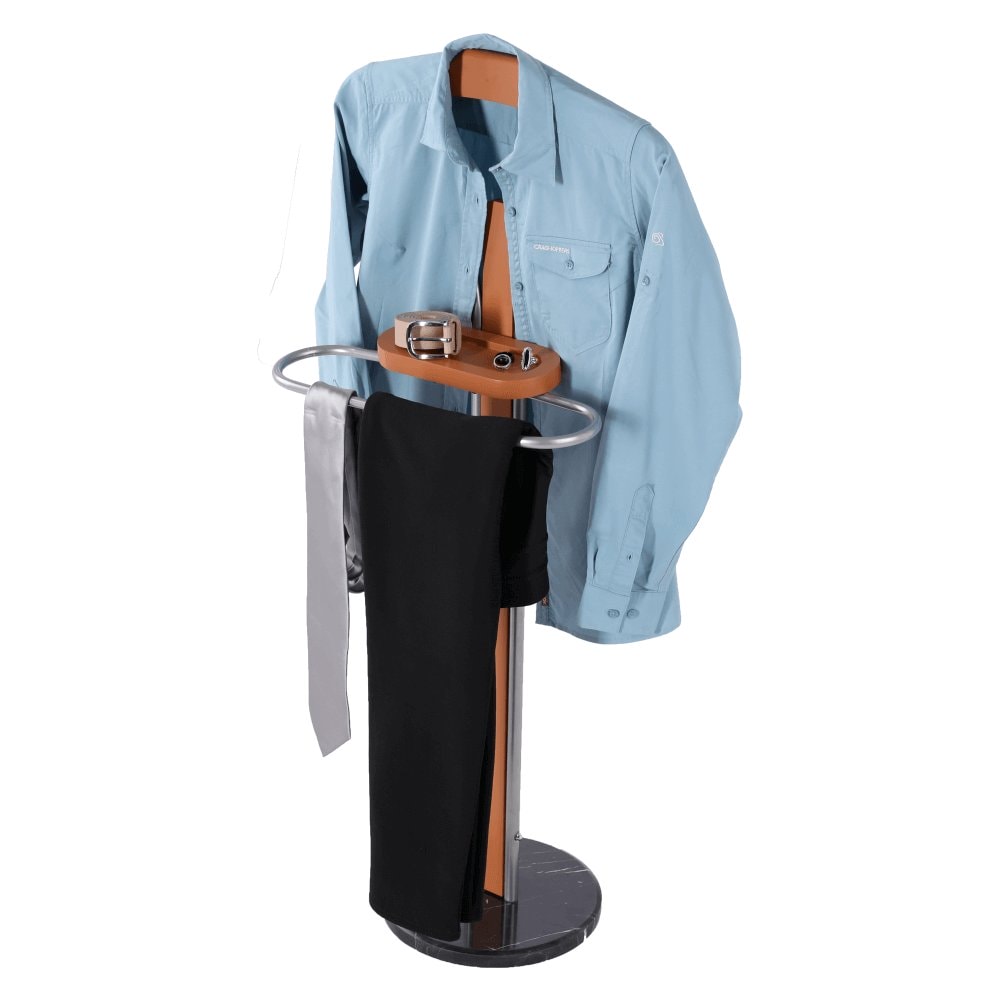 Věšák - němý sluha LUKE je vyrobeny v kombinaci kov + dřevo + mramor.
