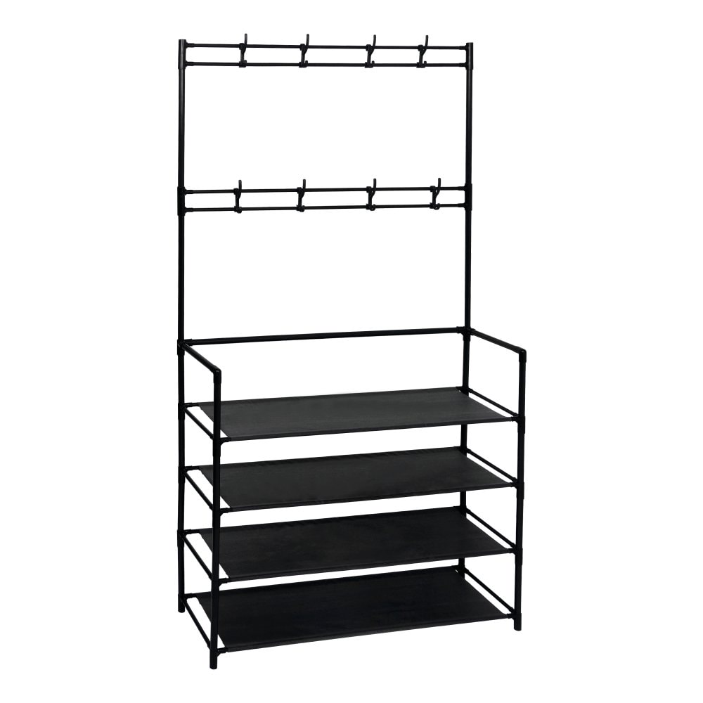 Krásně oživí vaši předsíň a poskytne návštěvě prostor pro odložení jejich kabátů či bot. Poskytuje dostatek úložného prostoru v podobě 8 háků, které jsou rozděleny ve dvou řadách. V nejspodnější části věšáku se nachází botník, který má 4 police. Botník s věšákem je vyroben z kovu a plastu v černé barvě, který se hodí do jakéhokoli stylu a interiéru. Věšák s botníkem TARAS si najde uplatnění v každé chodbě, předsíni a šatně.