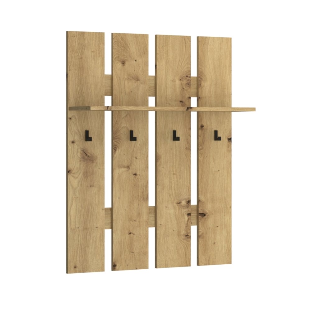 Materiál: DTD laminovaná/ABS hrany Barva: dub artisan Rozměry (ŠxHxV): 80x23x100 cm Tloušťka materiálu: 1,6 cm Police Nosnost police: 3 kg Čtyři háčky Doporučujeme připevnit ke zdi Dodáváno v demontu