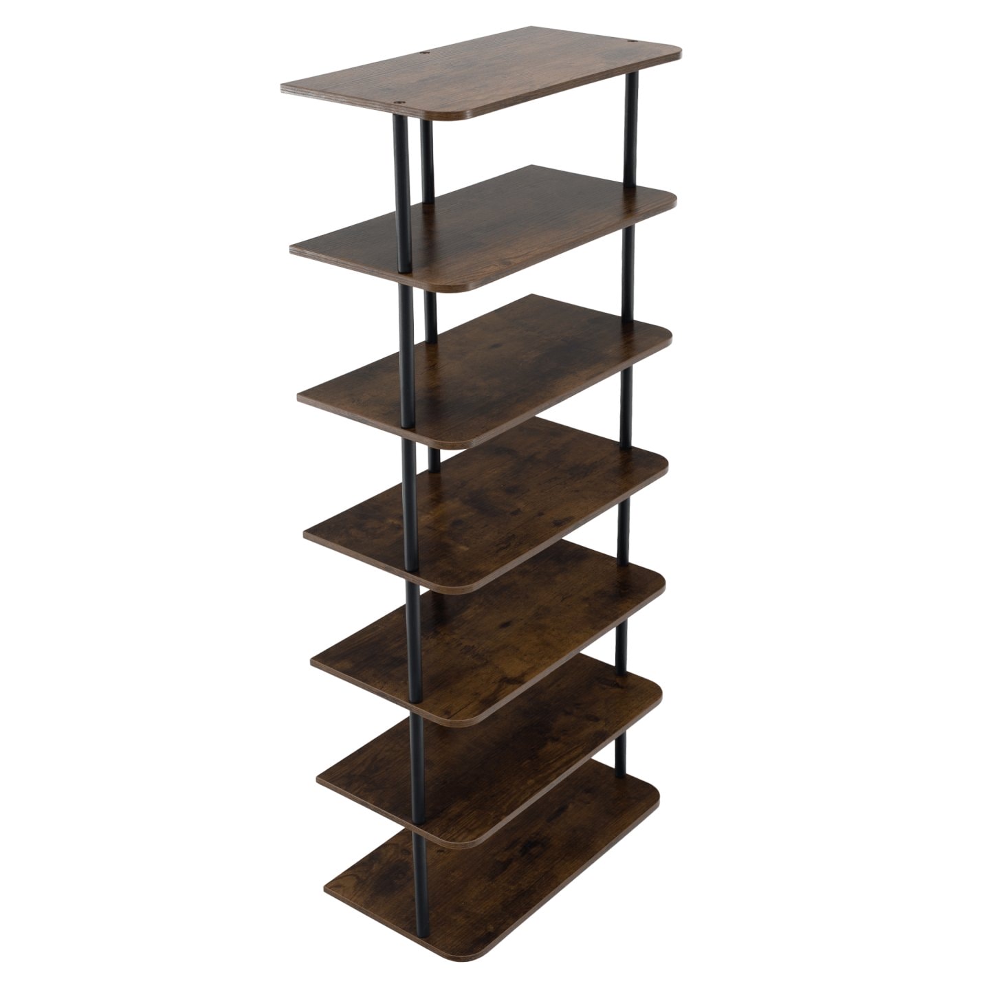 Materiál: kov/DTD Barva: černá/rustikální dřevo Rozměry (ŠxHxV): 46x24x102,5 cm Tloušťka tyče: 1,6 cm Nosnost na polici: 5 kg-10 kg Výška police: 16 cm 6-řadý Víceúčelový Dodáváno v demontu