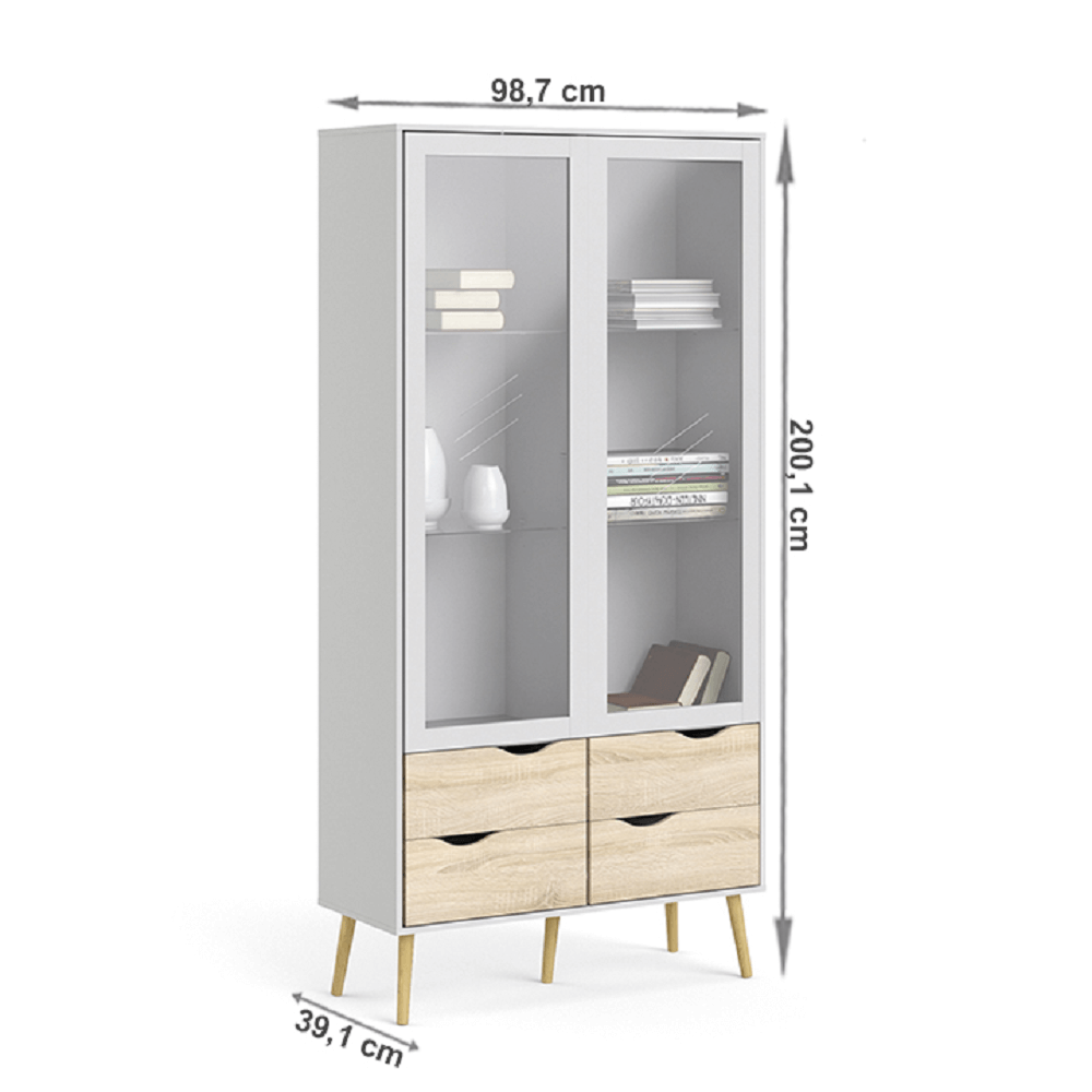 Vitrína Oslo 75462 je výborným prostředkem, jak zamaskovat všechny nepotřebné či nevyužívané věci. Se spoustou úložného prostoru, kterým se pyšní, bude dobrým a praktickým pomocníkem v domácnosti. Sestává ze skříňky se dvěma dvířky, za kterými se nacházejí police a ze čtyř šuplíků. Dvířka jsou skleněná.