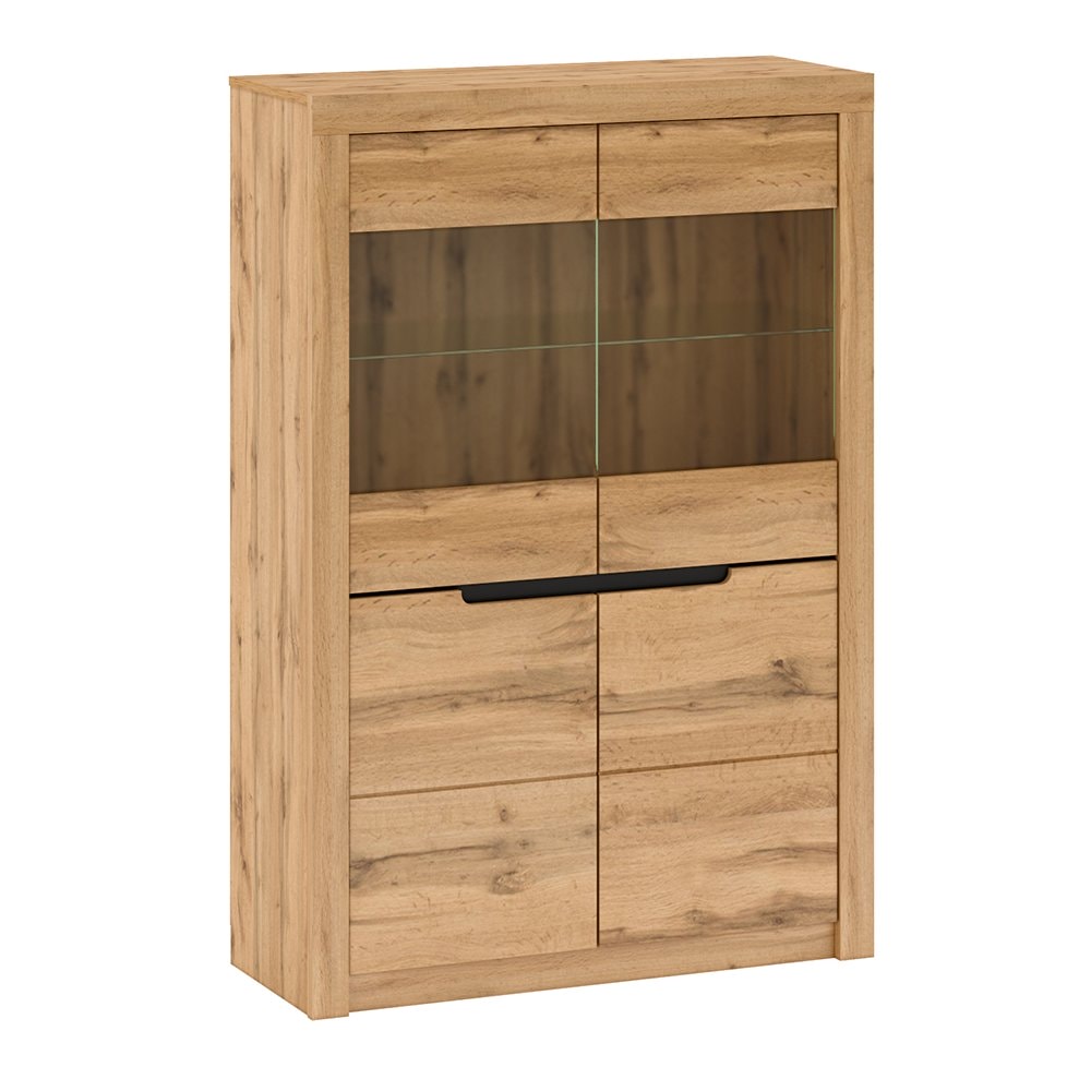 Vitrína TORONTA C se u vás určitě zabydlí. Nabízí úložný prostor v podobě čtyř skříněk. Dvě skříňky mají prosklené dvířka, dvě plné. Všechny vaše věci získají jedinečný a stylový domov.