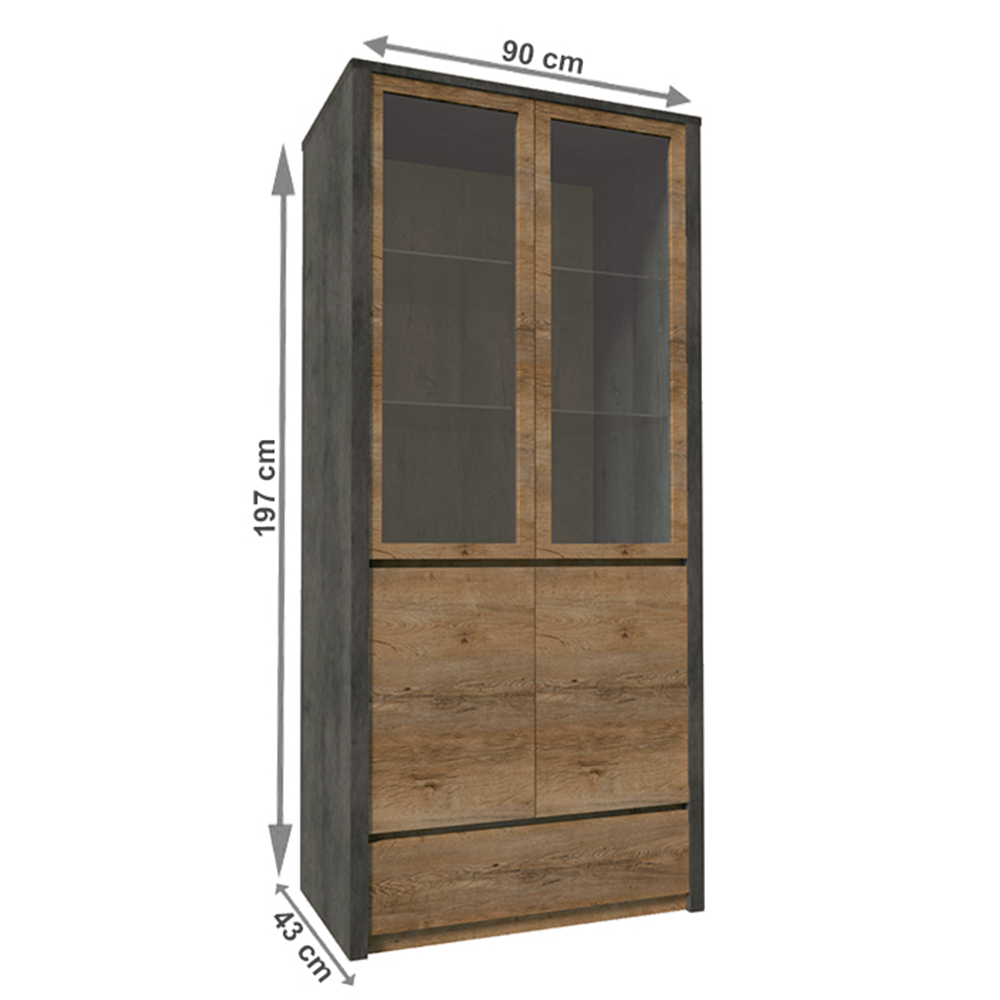 Vitrína, dub lefkas tmavý/smooth šedý, MONTANA W2D