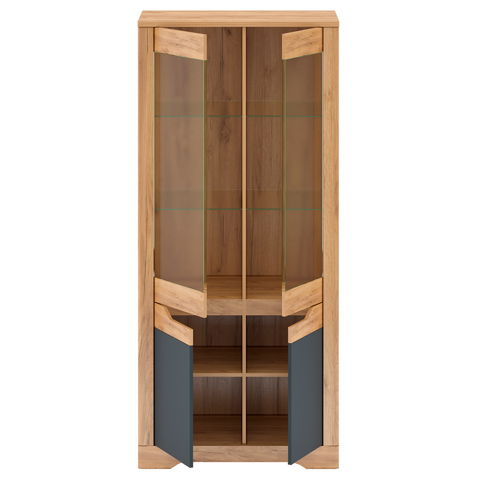 Vitrína H, dub craft zlatý/grafit šedá, FIDEL