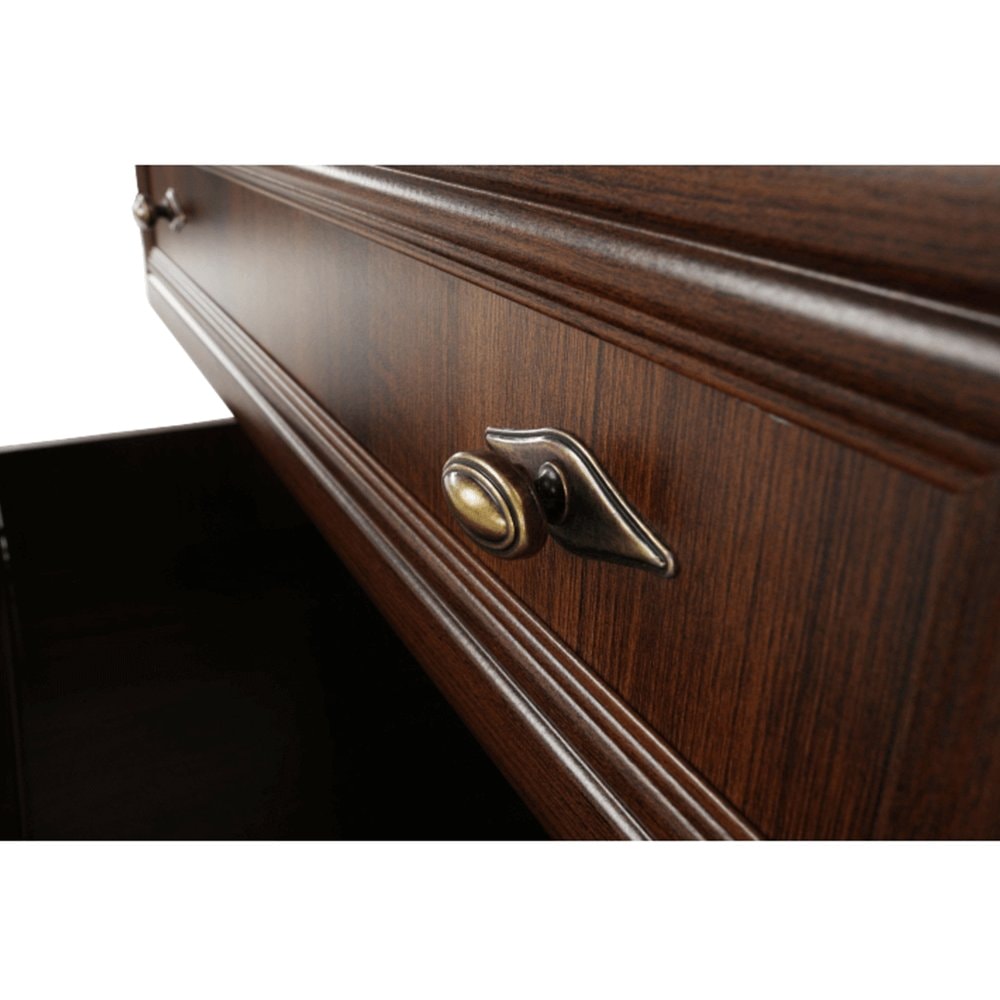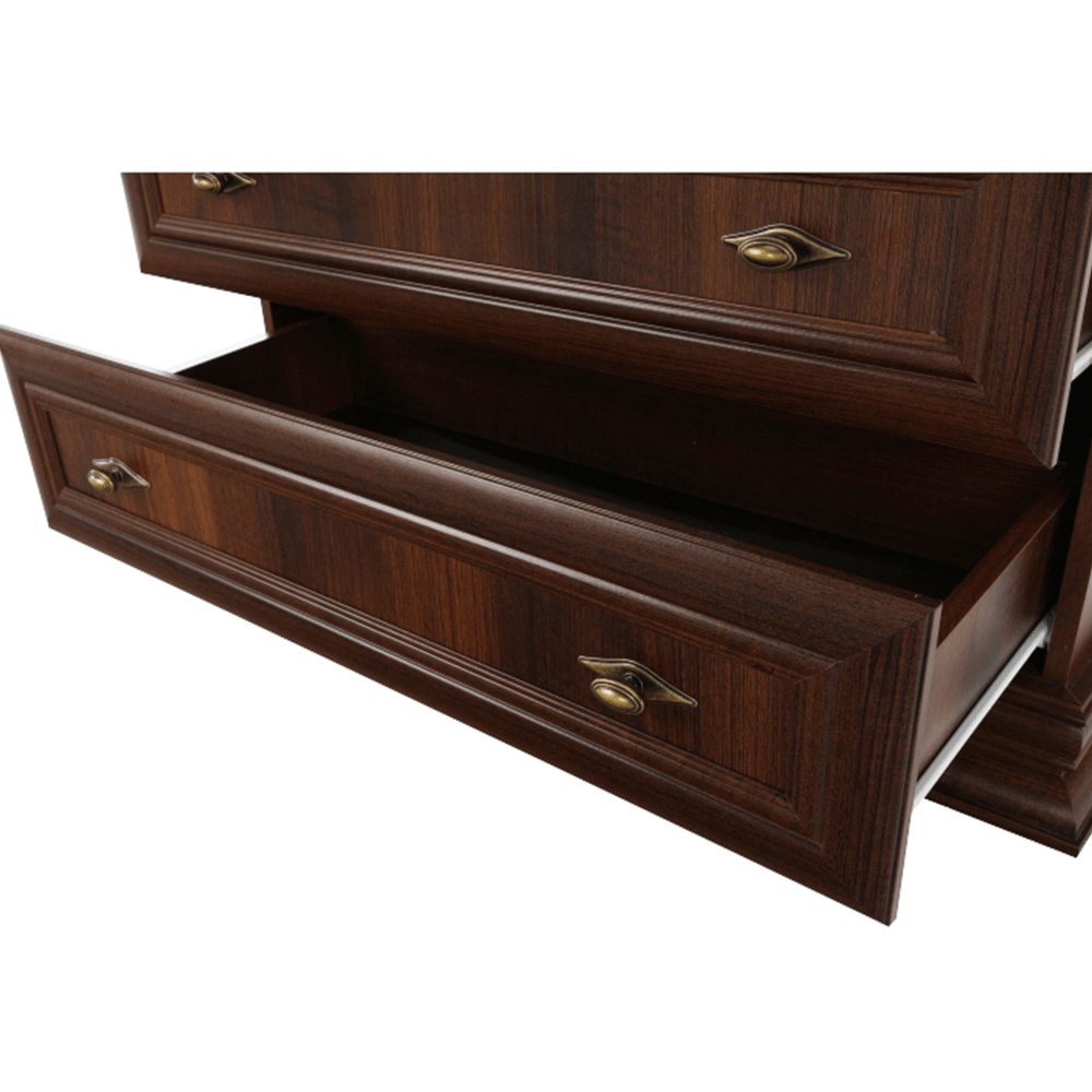 Dotykem rustikálního designu jsou poznamenány i jednotlivé kousky nábytku ze sektorového systému KORA. Je vhodný zejména na zařízení obývacích pokojů, jídelen, ložnic nebo pracoven. Základ materiálu, ze kterého je nábytek vyrobený tvoří laminovaná dřevotřísková deska. Ozdobné lišty jsou z MDF. Úchytky jsou vyrobeny z kovu. Zajímavé jsou i nohy, které nábytku zajišťují stabilitu. Sektor KORA nabízíme v barevném provedení samoa king.