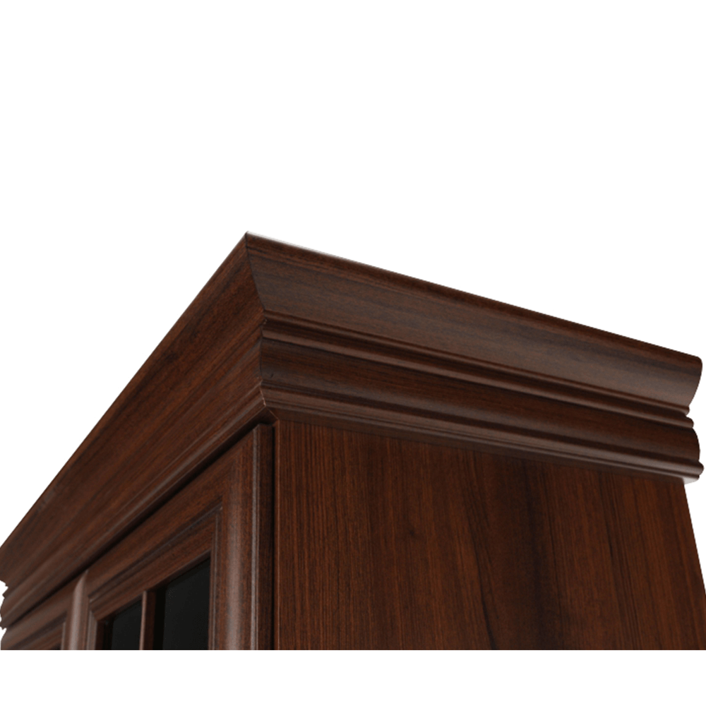 Vitrína KRW2 KORA. Barevné provedení samoa king. Materiál laminovaná DTD, MDF, kov, sklo. Rozměry (ŠxHxV): 88x40x193 cm Tloušťka materiálu korpus: 15 mm Tloušťka materiálu vrchní desky: 22 mm Tloušťka materiálu dolní desky: 22 mm Výška spodního prostoru od podlahy: 10,5 cm